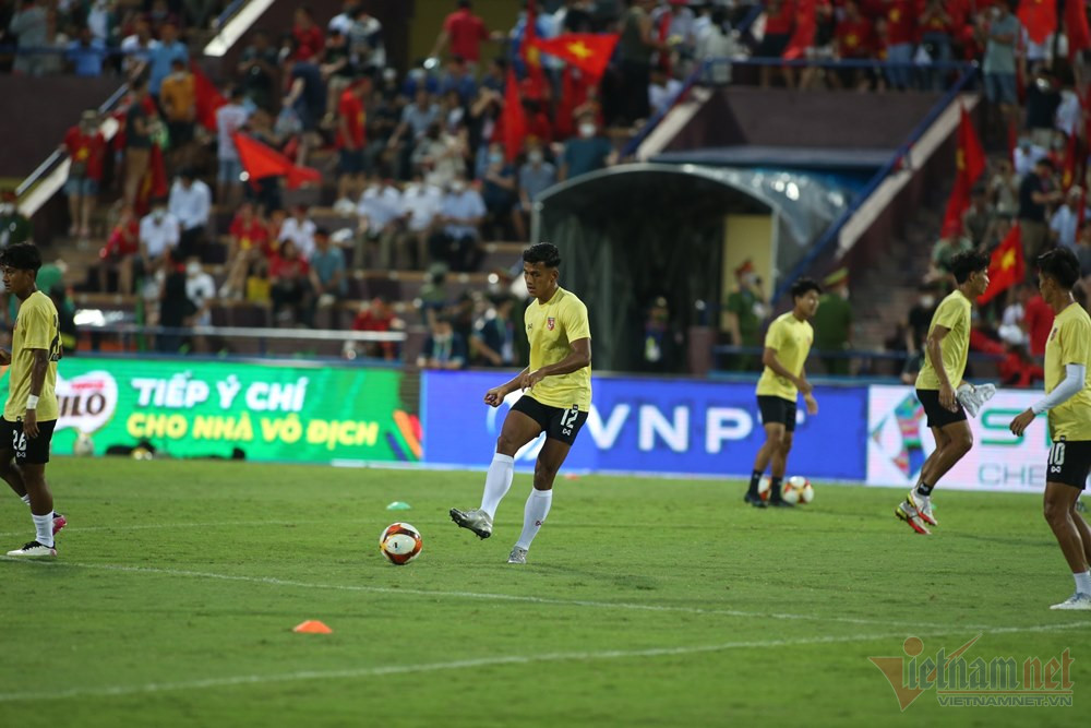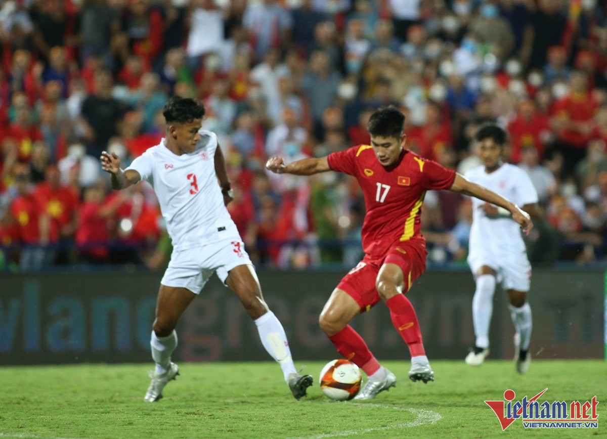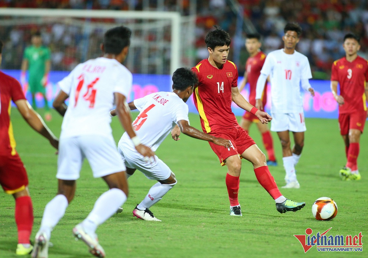 Văn Đô đột phá từ cánh phải, anh loại bỏ cầu thủ U23 Myanmar trước khi tung cú sút ở góc hẹp. Pha dứt điểm chưa đủ độ khó để có thể đánh bại thủ môn Pyae Phyo Thu.