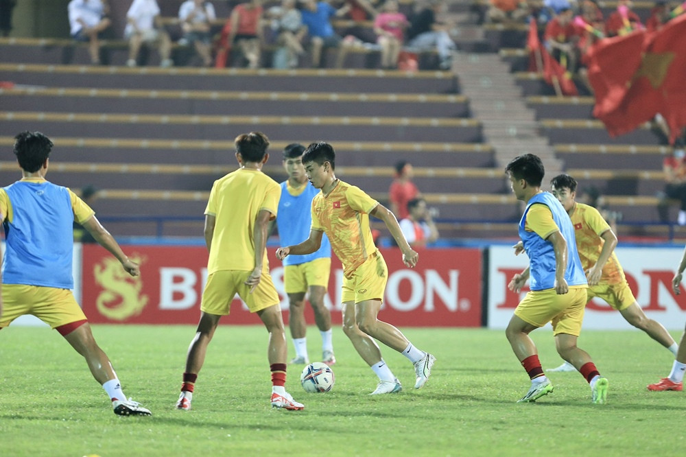 Các cầu thủ U23 Việt Nam khởi động trước trận đấu