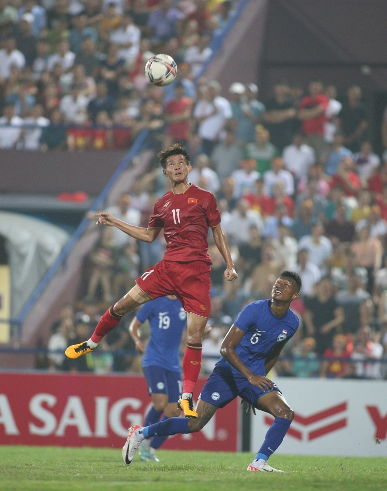 Không chỉ ép sân liên tục, các cầu thủ áo đỏ còn tổ chức đánh chặn từ xa kịp thời mỗi khi U23 Singapore có cơ hội phản công.