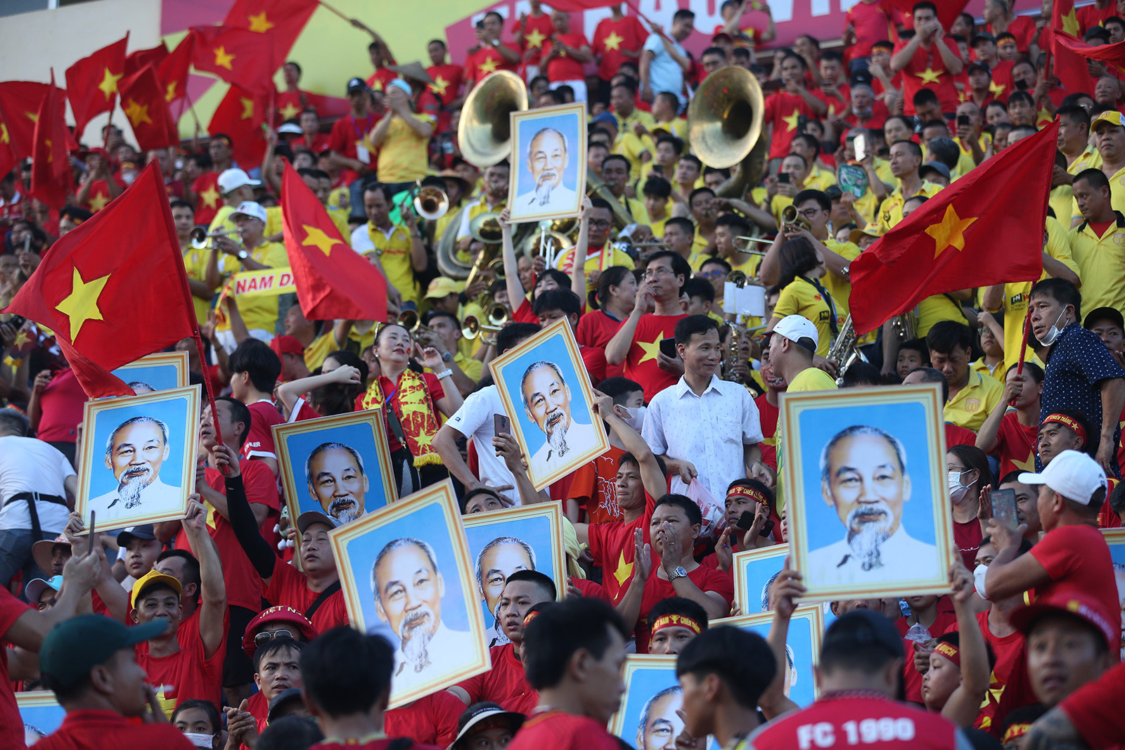 Trận đấu diễn ra sôi nổi khi các cầu thủ Việt Nam cầm bóng tự tin. Trên khán đài, khán giả Nam Định cỗ vũ đầy cuồng nhiệt.