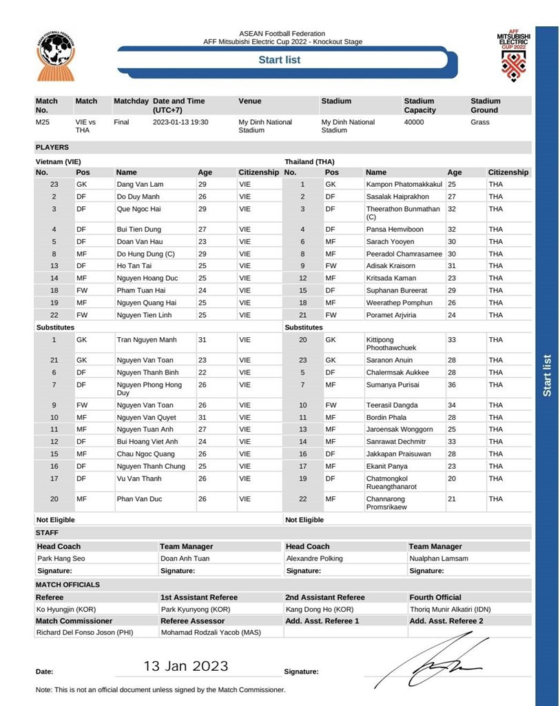 Đội hình xuất phát Việt Nam vs Thái Lan