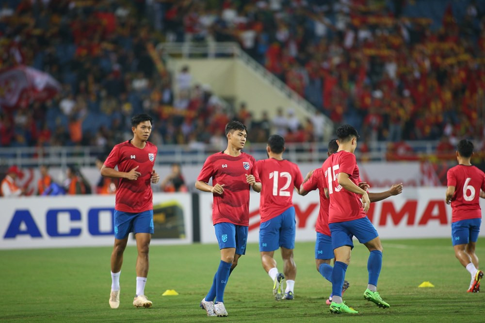 Cầu thủ Thái Lan khởi động trước trận đấu