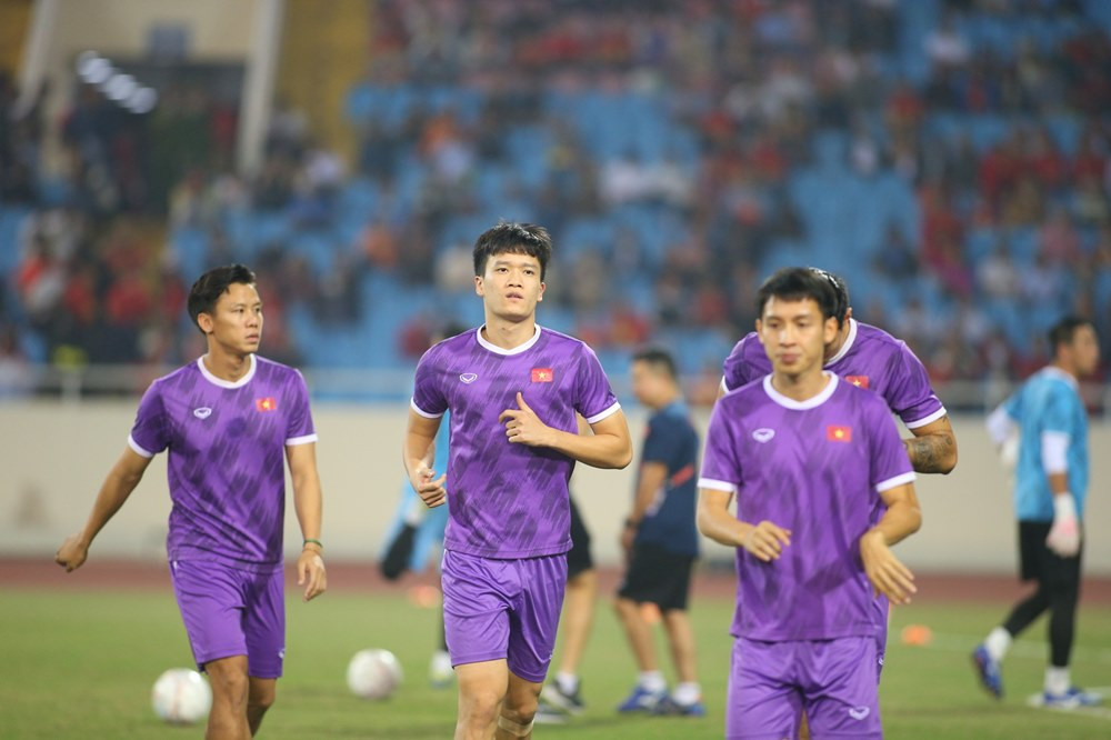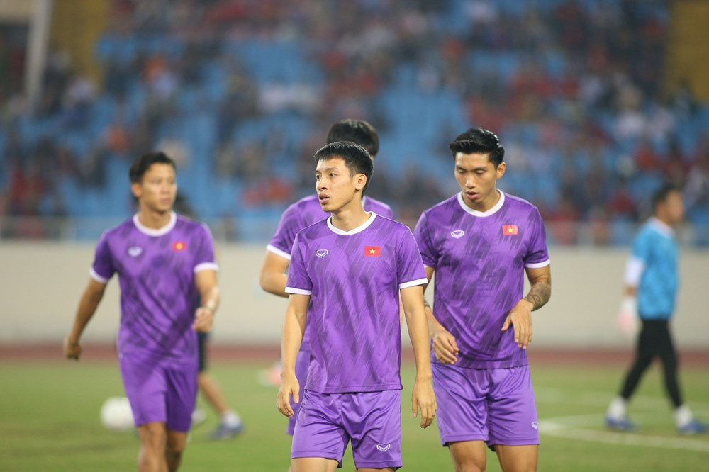 Các tuyển thủ Việt Nam khởi động trước trận đấu