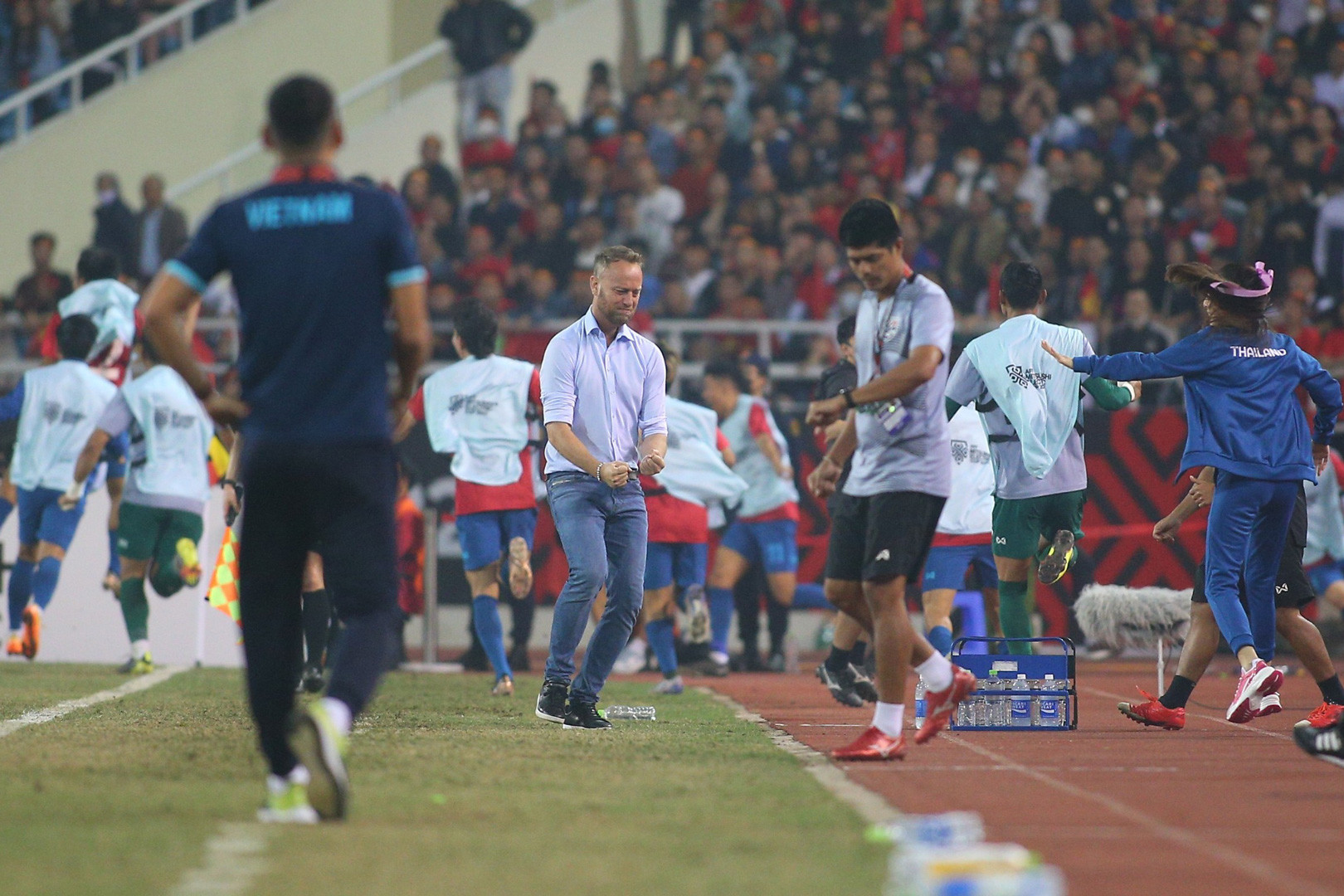 Trận chung kết lượt đi trên sân Mỹ Đình đang diễn ra với thế trận giằng co, Thái Lan kiểm soát bóng nhiều hơn so với những phút đầu trận.