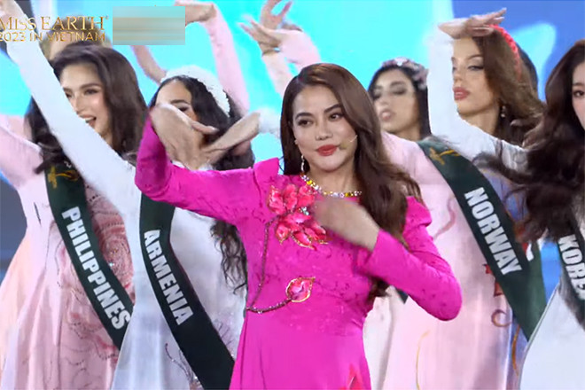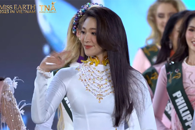 90 thí sinh gây bất ngờ khi xuất hiện xinh đẹp, e lệ trong chiếc áo dài truyền thống của Việt Nam. Đêm chung kết Miss Earth 2023 lồng ghép tôn vinh trang phục truyền thống và văn hoá Việt Nam trong tiếng nhạc du dương của các nhạc cụ truyền thống trong phần mở đầu gây thiện cảm với khán giả.