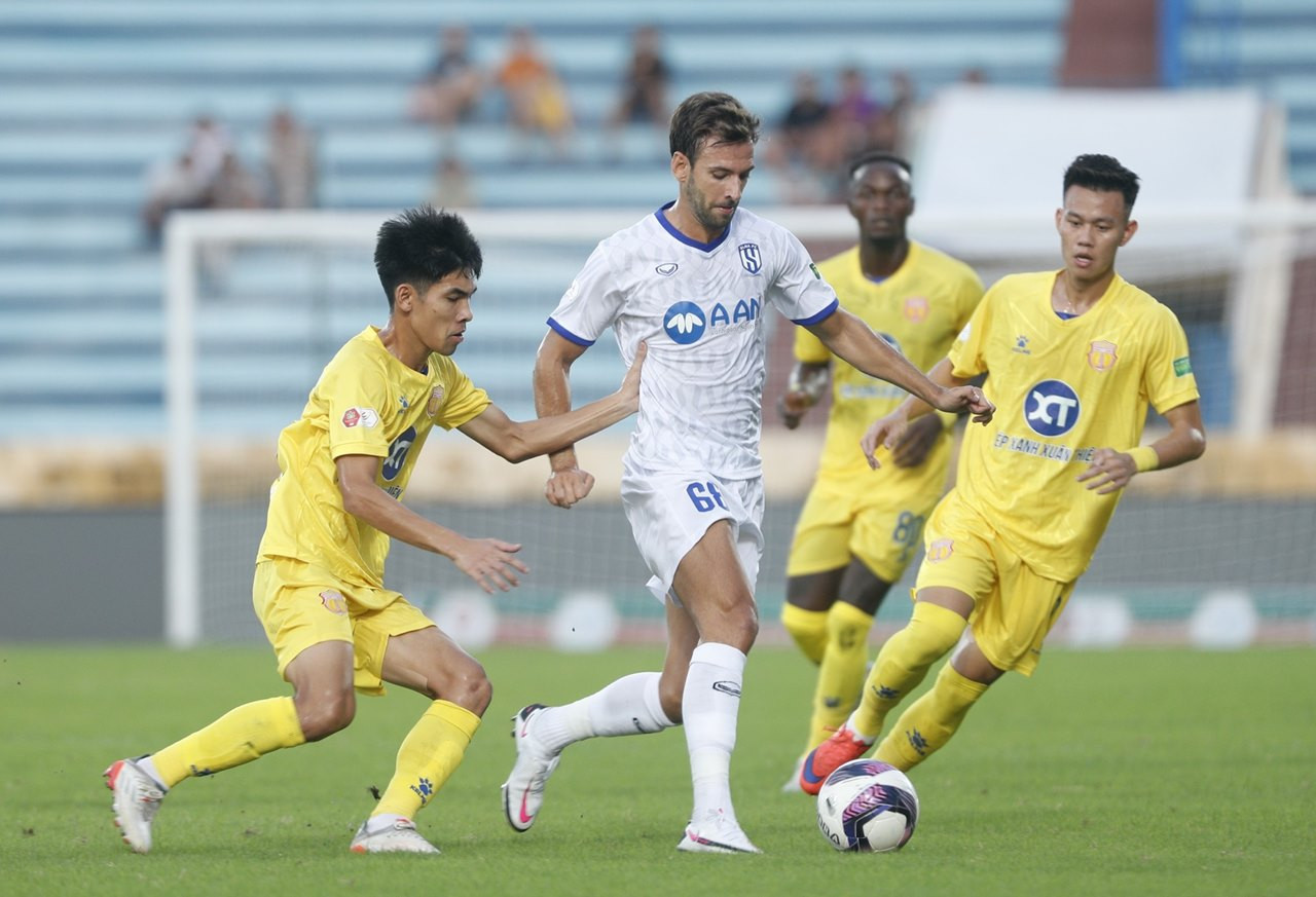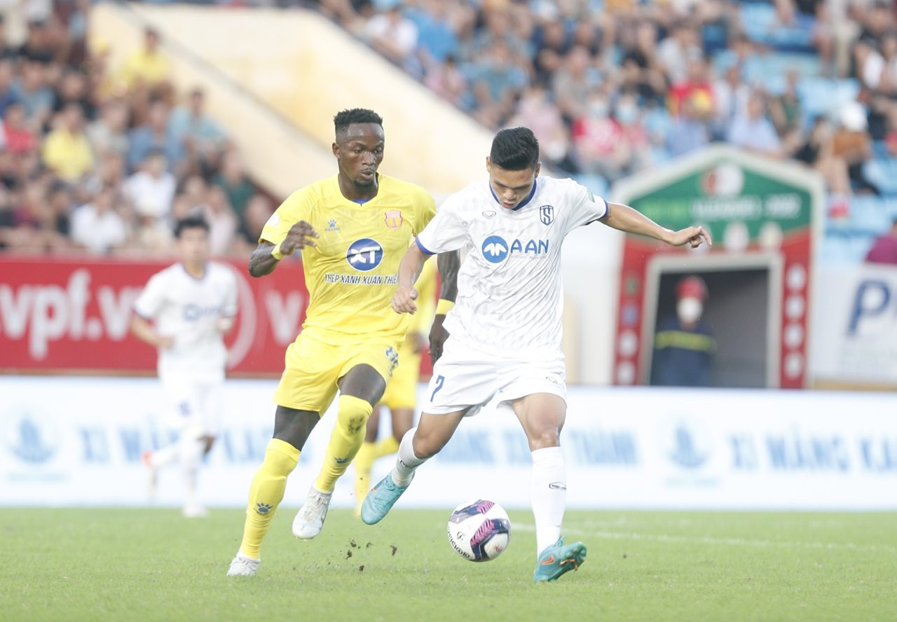 Đội bóng xứ Nghệ vẫn đang tạo được sức ép đáng kể lên phần sân của Nam Định.