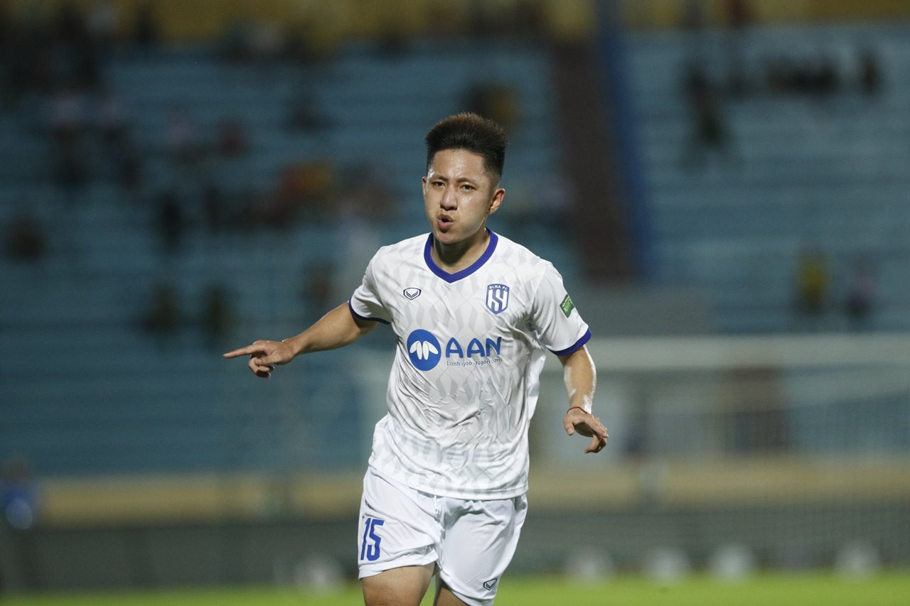 Trần Đình Tiến bên phía SLNA tung cú sút tuyệt đẹp từ khoảng cách chừng 27m đưa bóng đi rất căng khiến thủ môn Xuân Việt hoàn toàn bó tay.