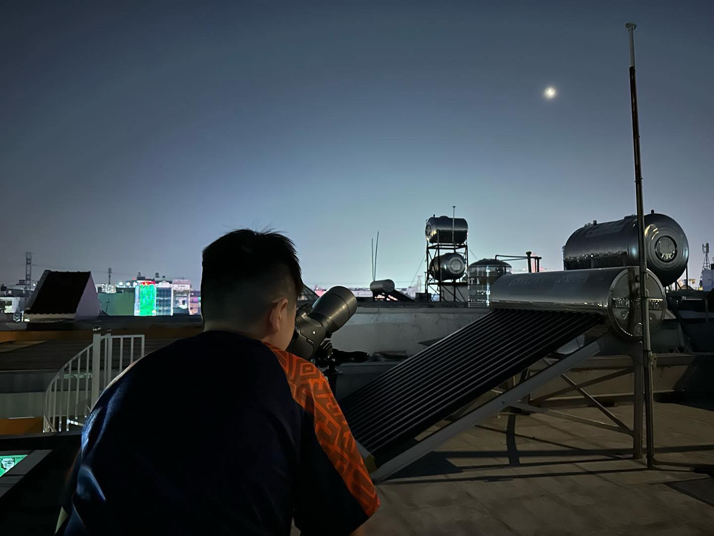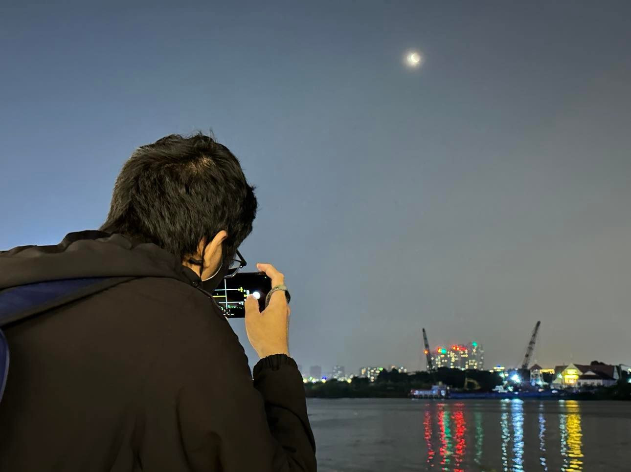Anh Nam Nguyễn (TP.HCM) cùng gia đình lên ngắm nguyệt thực trên sân thượng. Sau khi quan sát và chụp được ảnh, anh cho biết đây là lần mặt trăng to nhất (gần trái đất nhất) anh từng chụp.