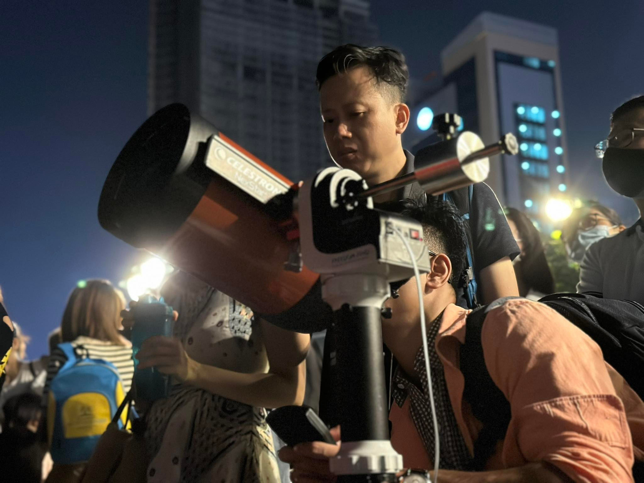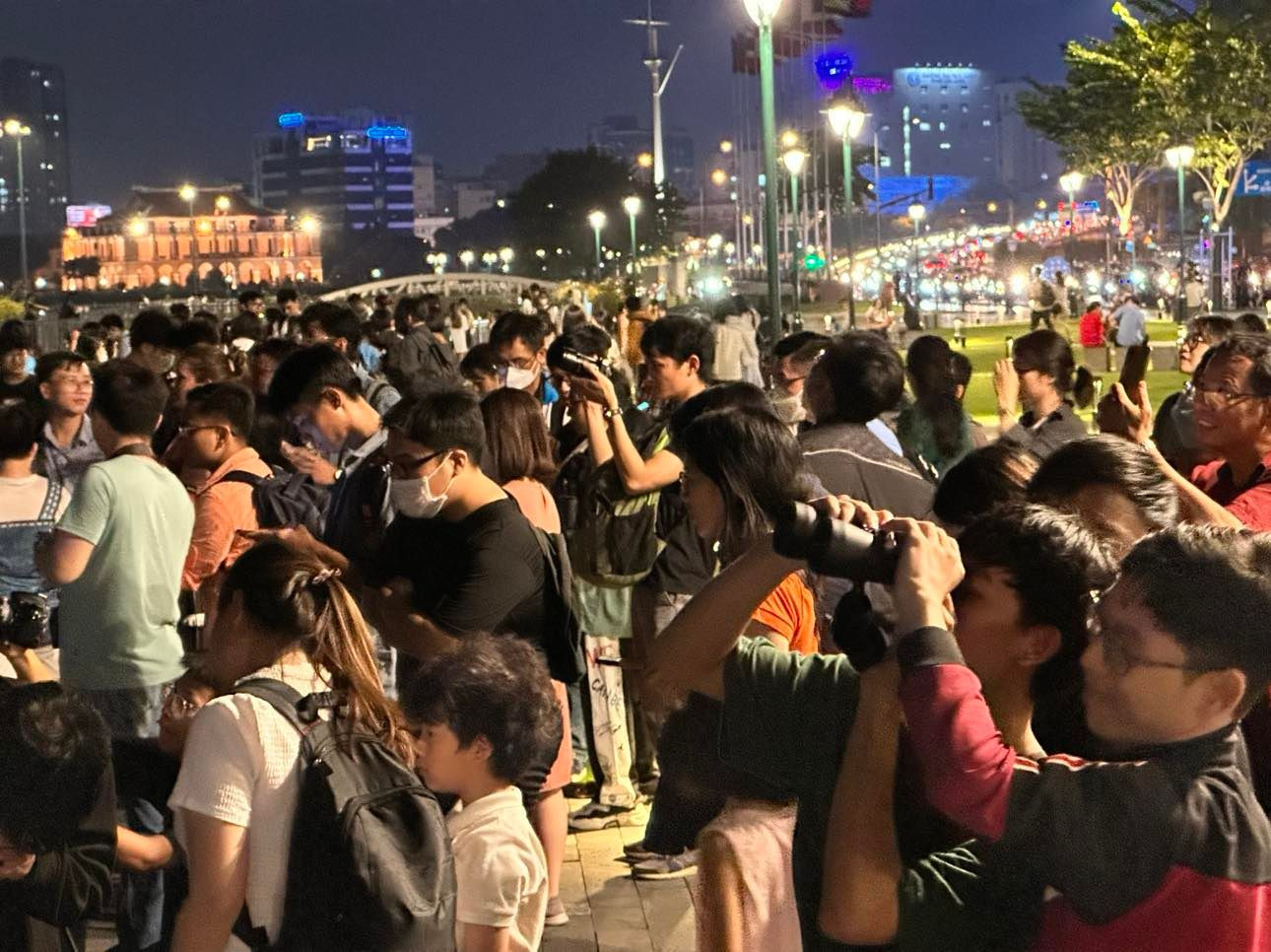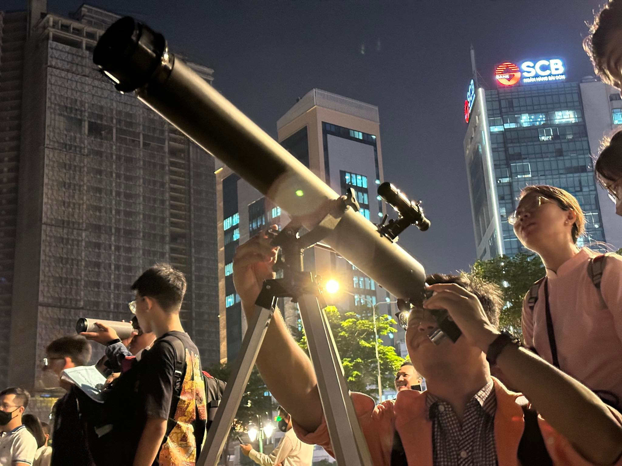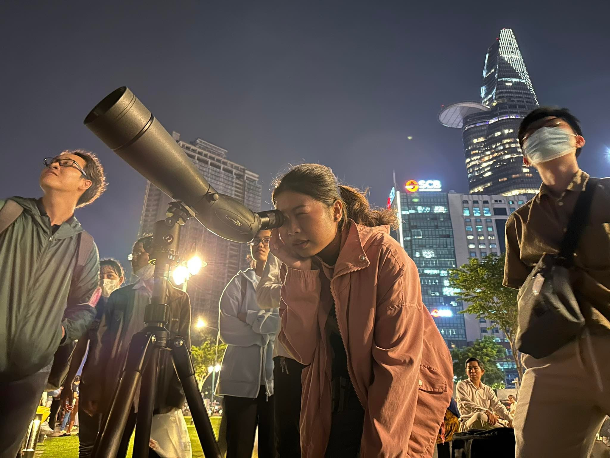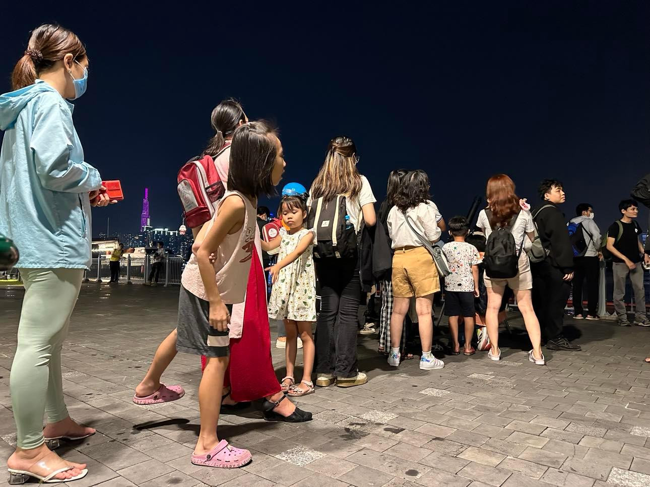 Tại TP.HCM, nhiều người cũng tập trung ở những khu vực như công viên bến Bạch Đằng - Quận 1 để đón xem hiện tượng thiên nhiên thú vị này.