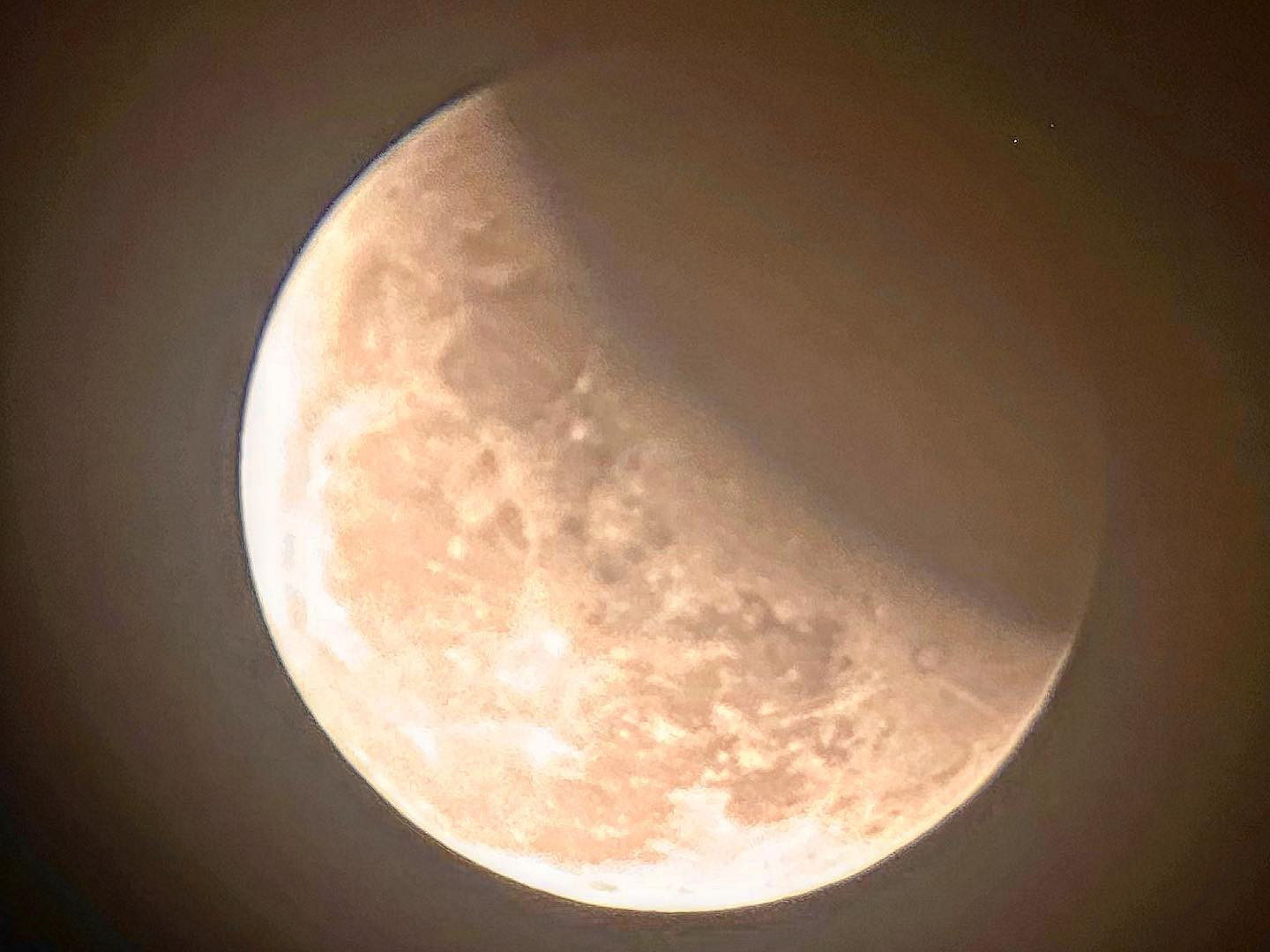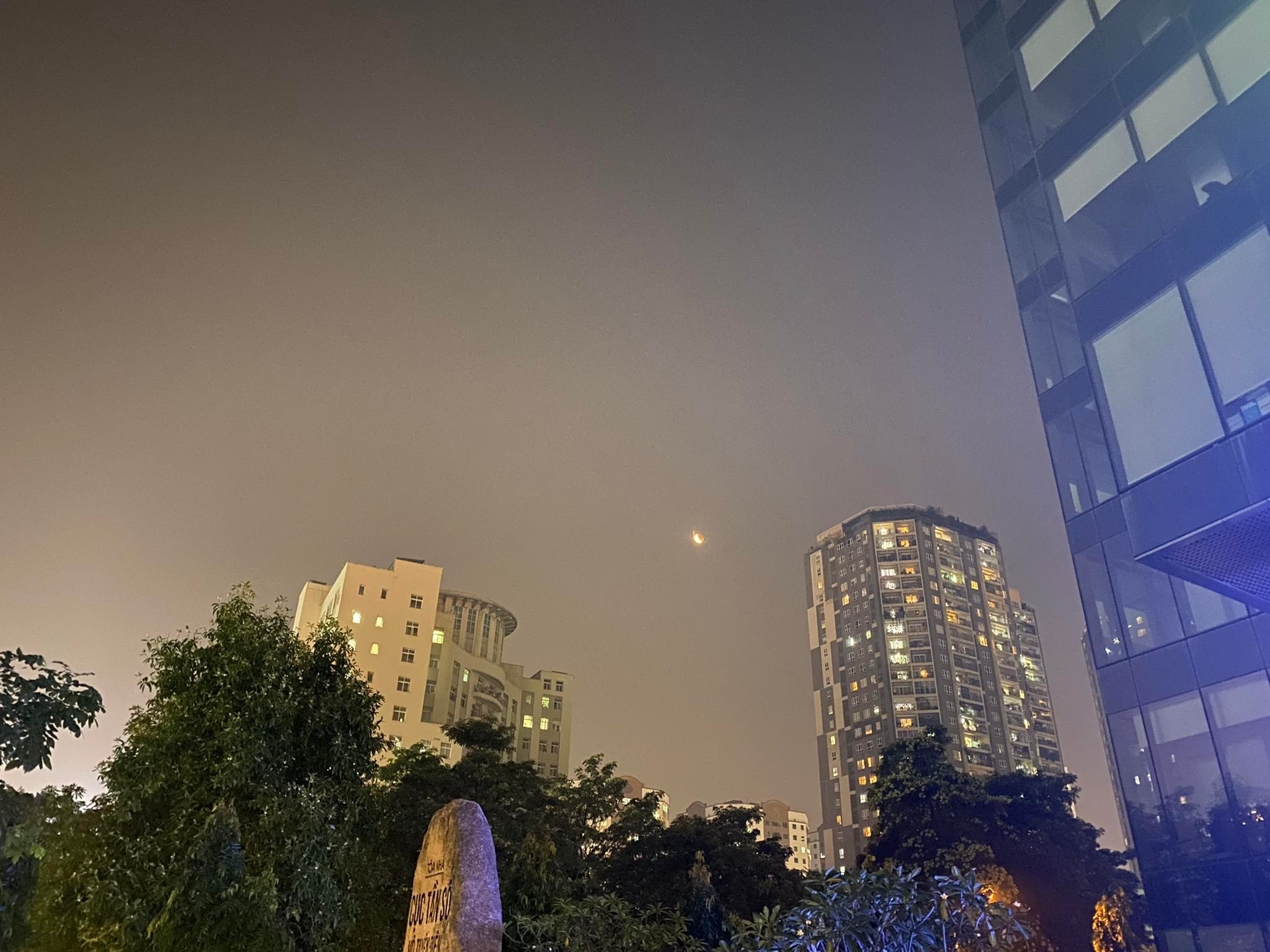 TS Nguyễn Ngọc Huy (Huy Nguyen), chuyên gia biến đổi khí hậu và giảm thiểu thiên tai cho biết, hơi tiếc khi vào thời điểm diễn ra nguyệt thực toàn phần, bầu trời ở nhiều nơi bị che bởi mây mù tầng thấp nên không thấy được cảnh trăng máu (mặt trăng đỏ au). Một số vùng quang mây nên quan sát rõ hơn như Thanh Hóa, Nghệ An hay vài tỉnh khu vực phía Nam. TS Huy Nguyên đã may mắn chụp được những bức ảnh nguyệt thực rất ấn tượng dưới đây. Mời độc giả VietNamNet cũng ngắm nhìn: