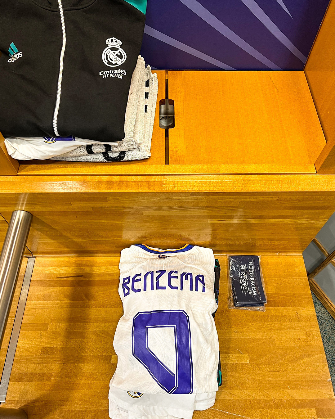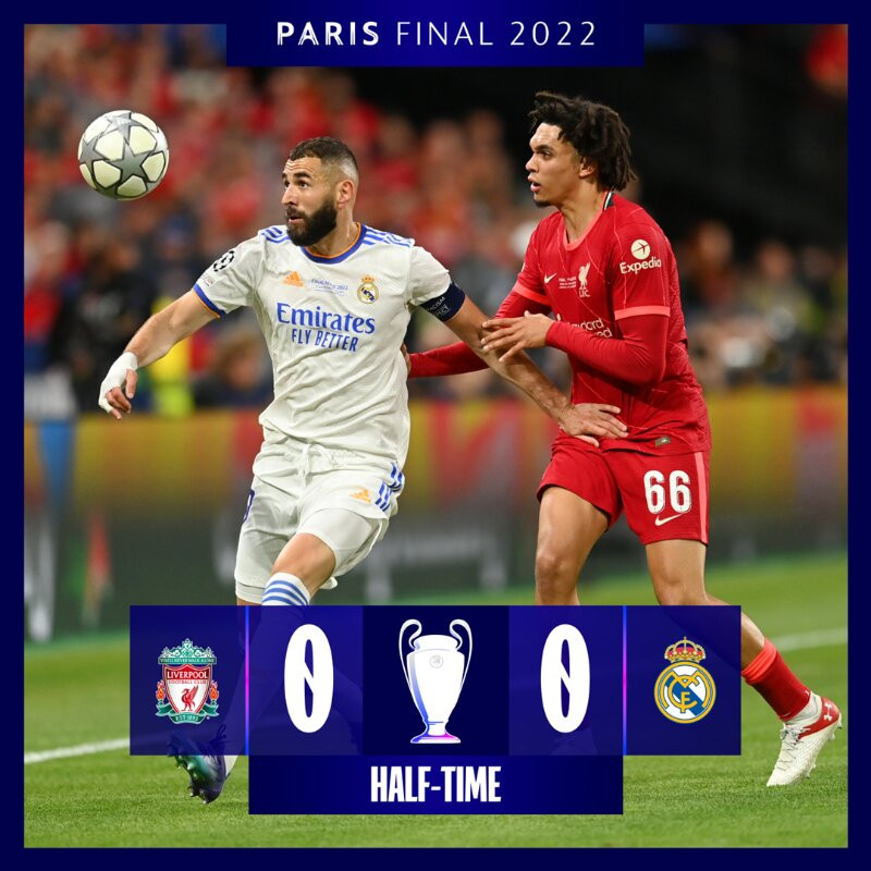 Benzema băng xuống gây ra sự xáo trộn cho hàng thủ Liverpool. Tiền đạo người Pháp sau đó chớp thời cơ nhanh đưa bóng vào lưới Alisson. Tuy nhiên, trọng tài biên đã phất cờ báo việt vị. Công nghệ VAR vào cuộc xác định quyết định chính xác của vị trọng tài biên.