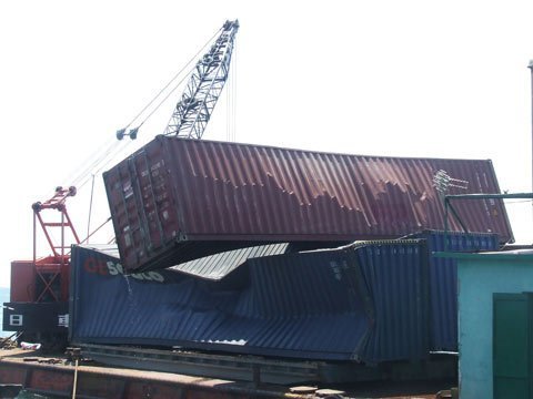 | Container được tập kết lên sàlan để bàn giao cho chủ tàu |