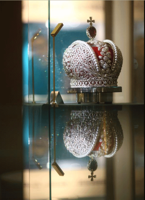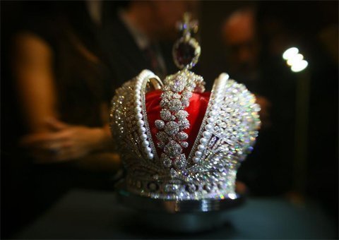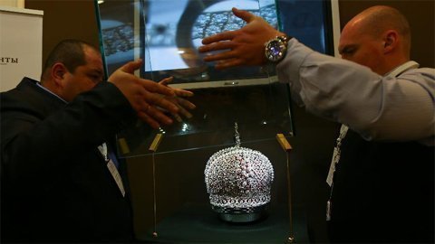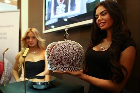Nga trưng bày bản sao vương miện của Nữ hoàng Catherine II với 110.000 viên kim cương tại Hội chợ Trang sức Quốc tế tại St. Petersburg hôm 6/2/2013.