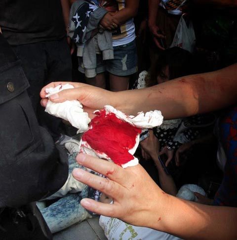Hậu quả của vụ này là đã có ít nhất 4 người bị thương, phải đi cấp cứu tại bệnh viện và một tấm cửa kính lớn của cửa hàng đã bị vỡ vụn.