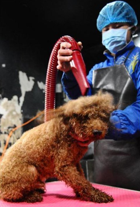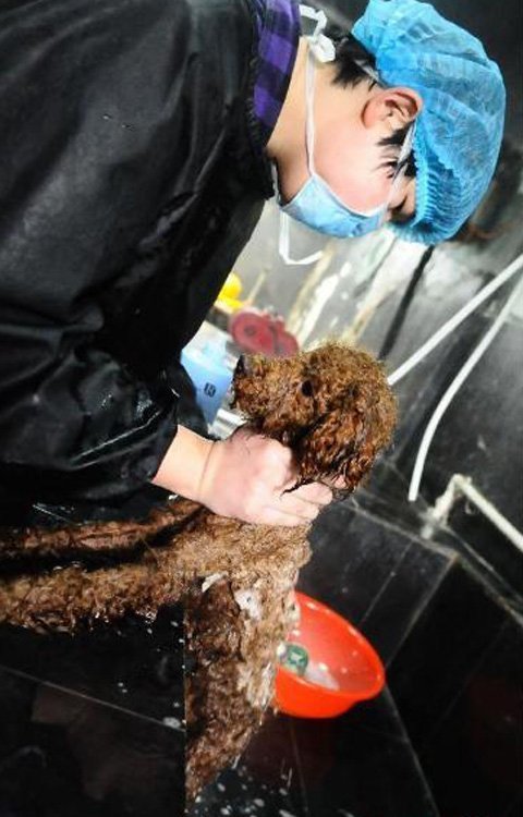 Thú cưng không chỉ được các nhân viên chăm sóc cho ăn, mà còn được tắm rửa sạch sẽ... (Ảnh: THX)