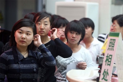 | Sinh viên Trung Quốc xếp hàng đợi khám tuyển nghĩa vụ quân sự. Ảnh: China Daily |