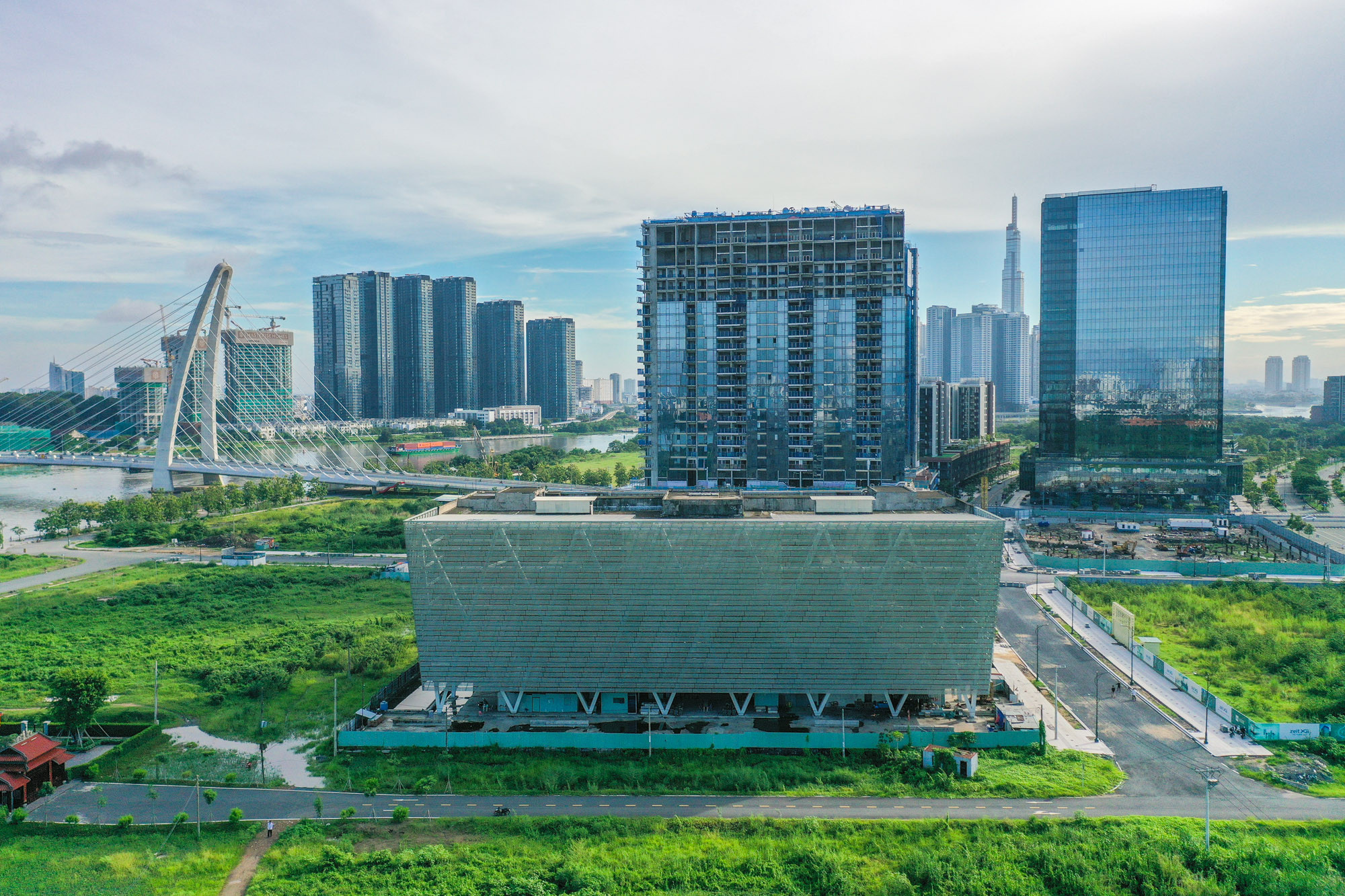 Công trình nằm tại khu vực quảng trường trung tâm, được xem như biểu tượng của Khu đô thị Thủ Thiêm. Tuy nhiên, sau 10 năm thi công dang dở, nhìn từ bên ngoài tòa nhà như một khối bê tông trơ trọi. Các bề mặt với những mảng tường bên ngoài đã nhuốm màu đen, cũ kỹ, hoang hóa sau thời gian dài không có dấu tay con người.
