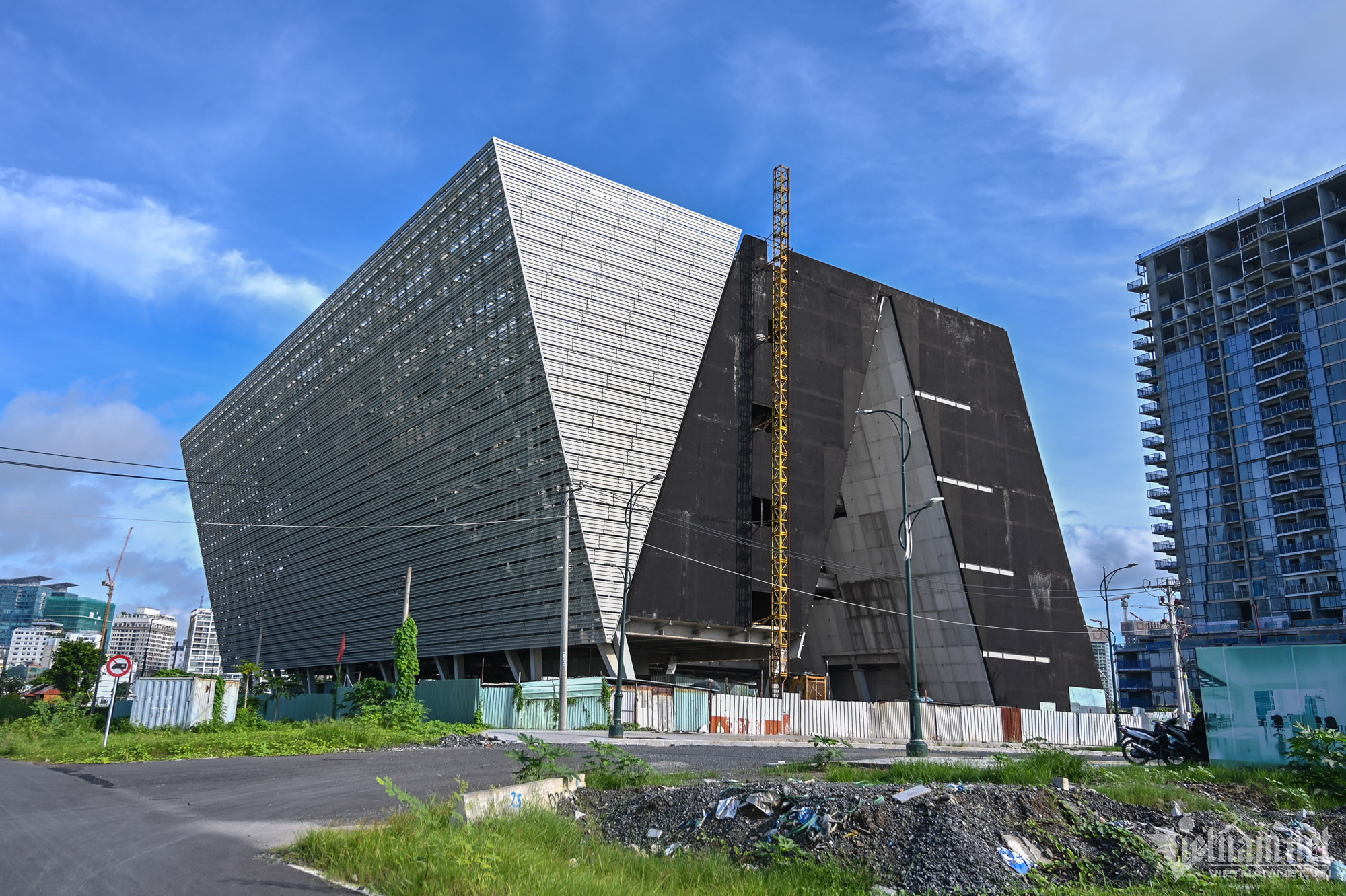 Công trình xây dựng Trung tâm triển lãm quy hoạch TP.HCM hiện đạt hơn 80% tiến độ. So với thời điểm năm 2019, nơi này không thay đổi nhiều dù đã hoàn thành phần thô, hiện chưa thể thi công hoàn thiện bởi vướng mắc về gói thầu sản xuất và lắp dựng vách kính, khung đỡ, vách ngăn... Mới đây, UBND TP.HCM đề nghị các đơn vị liên quan giải quyết dứt điểm các vướng mắc, khẩn trương hoàn thiện các hồ sơ thủ tục để triển khai thi công lại dự án vào đầu tháng 7.
