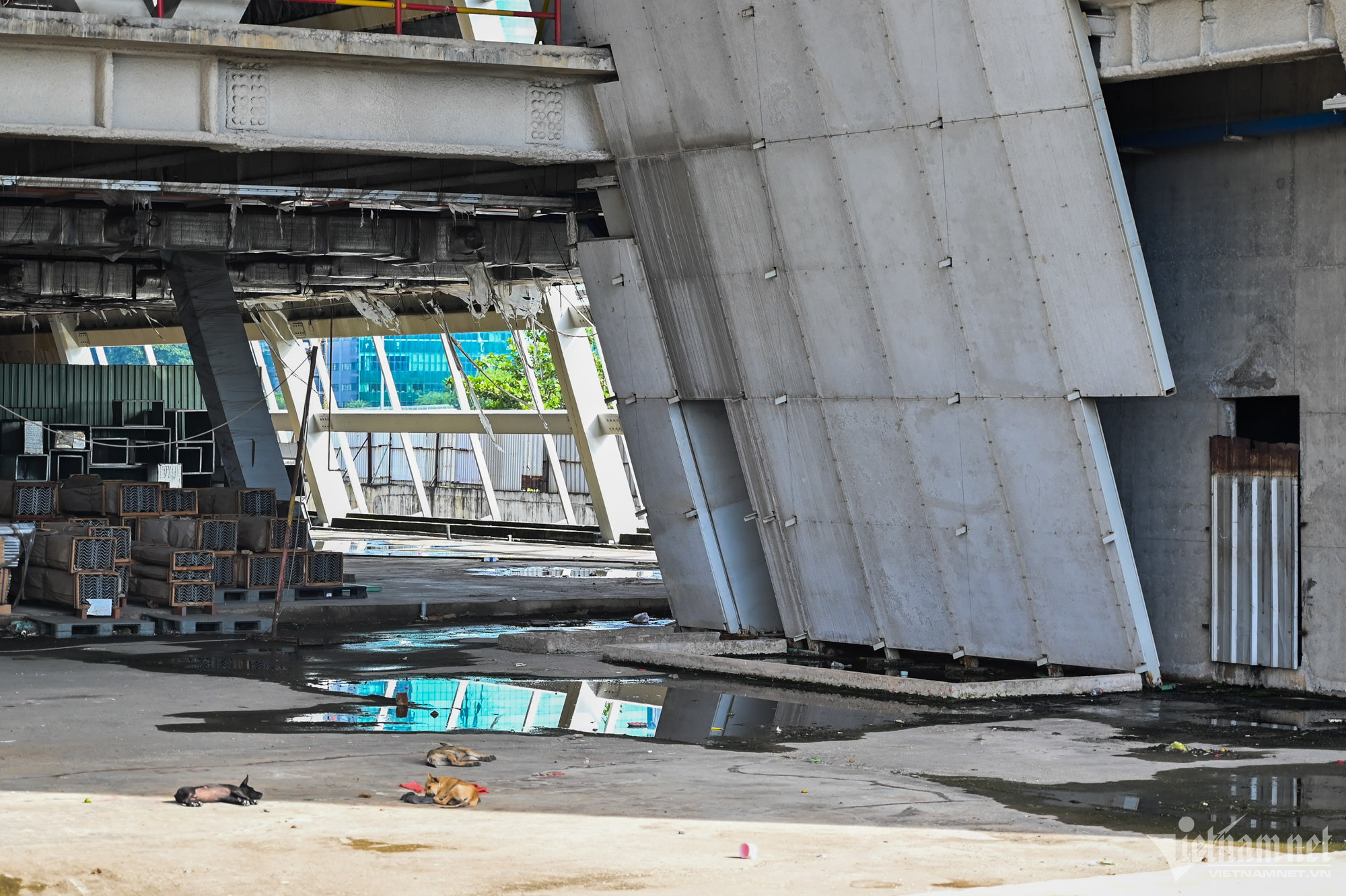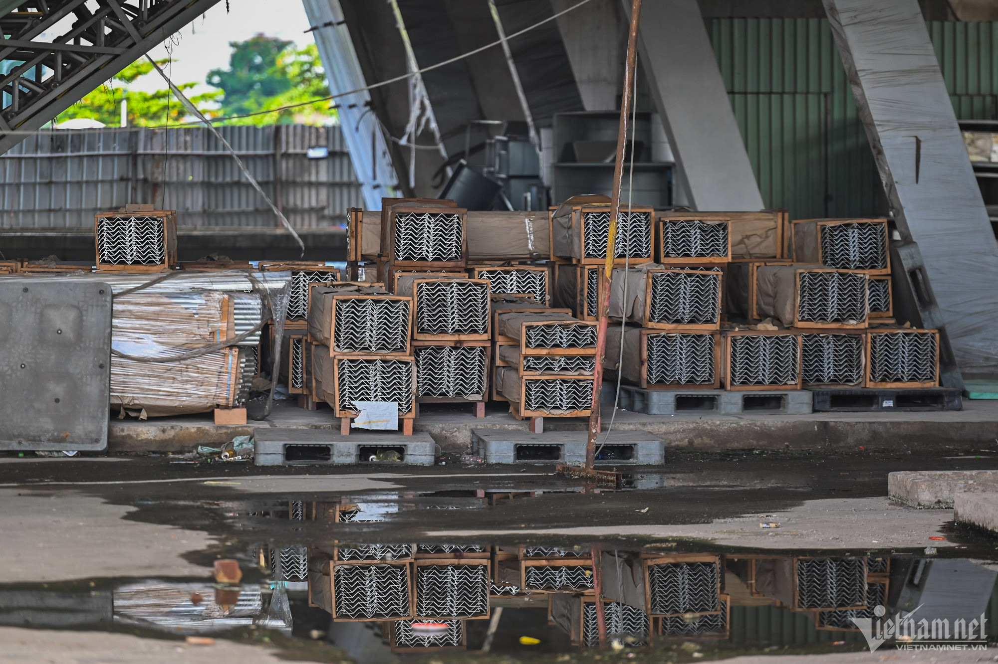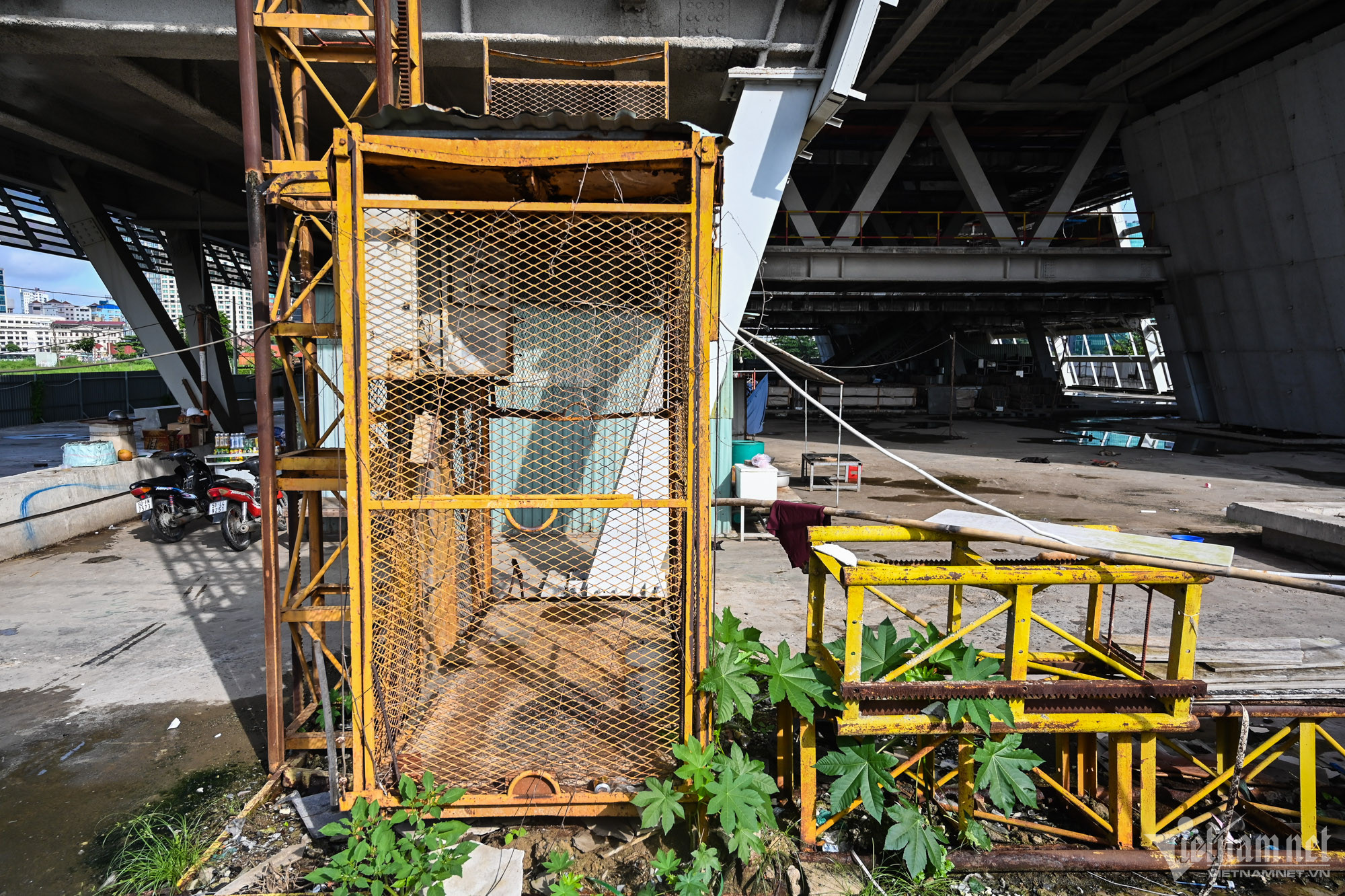 Các máy móc, nhà tạm vẫn để nguyên như 4 năm trước. Nhiều vật liệu xây dựng, ống thông gió ngổn ngang, cạnh đó là hệ thống thang máy chưa được hoàn thiện.