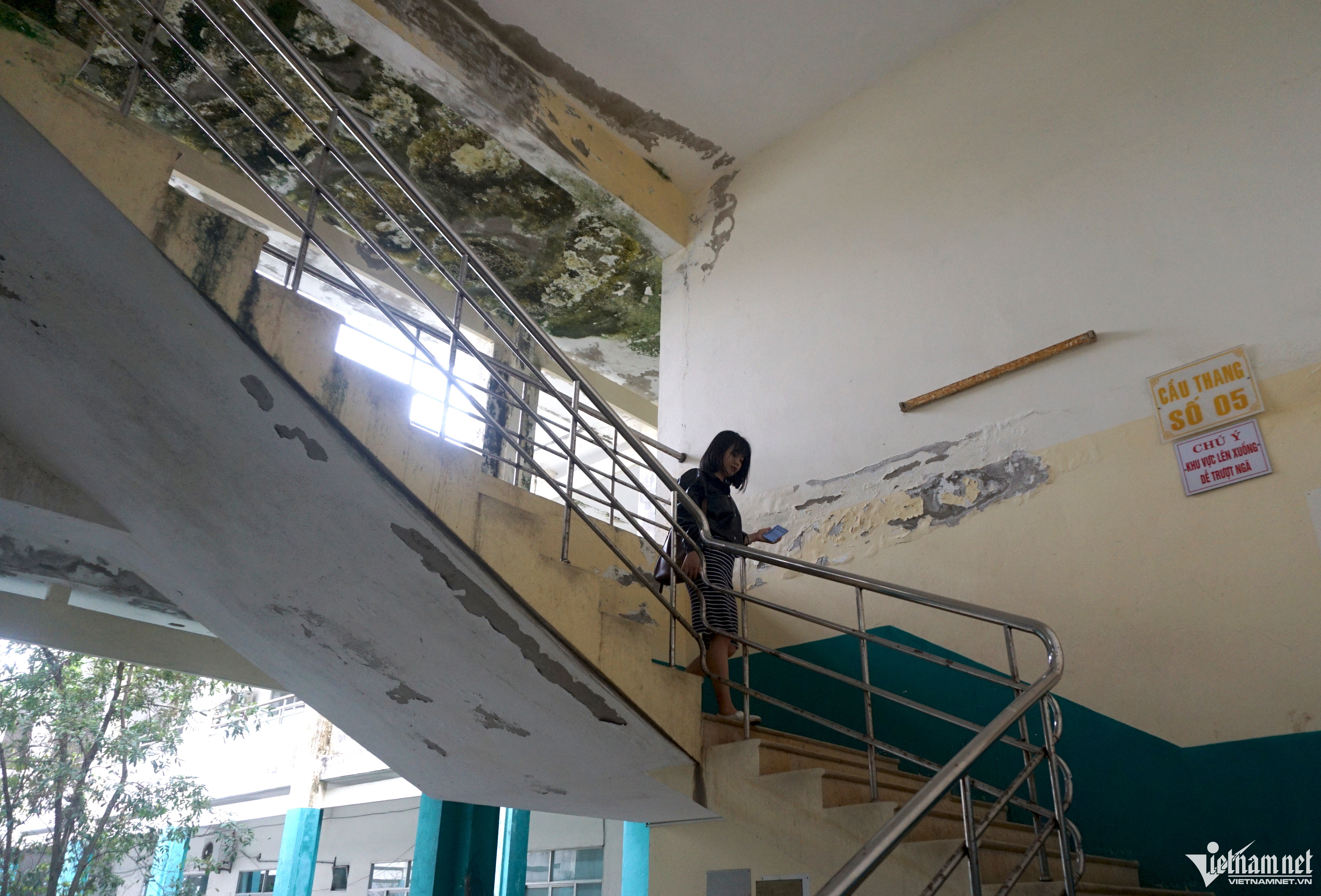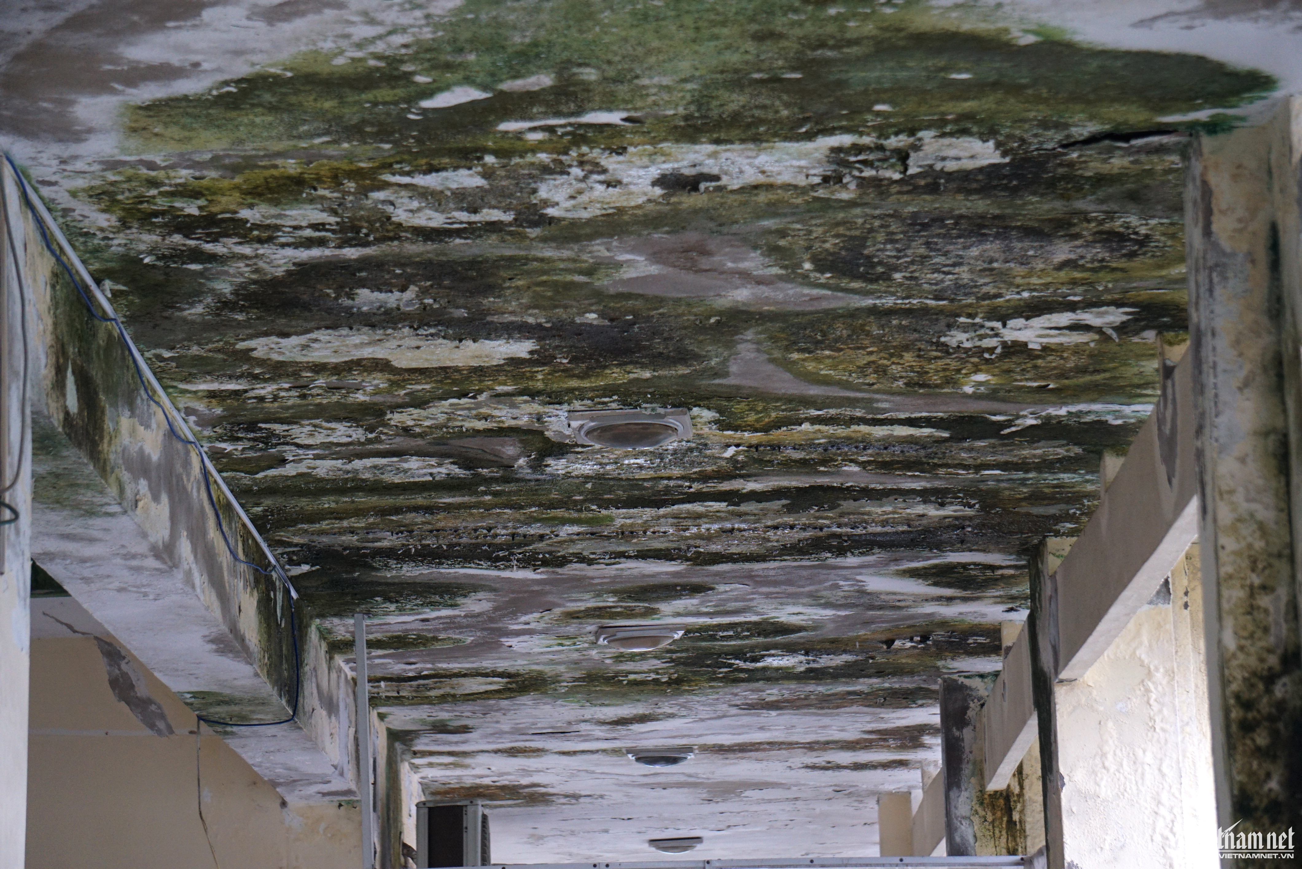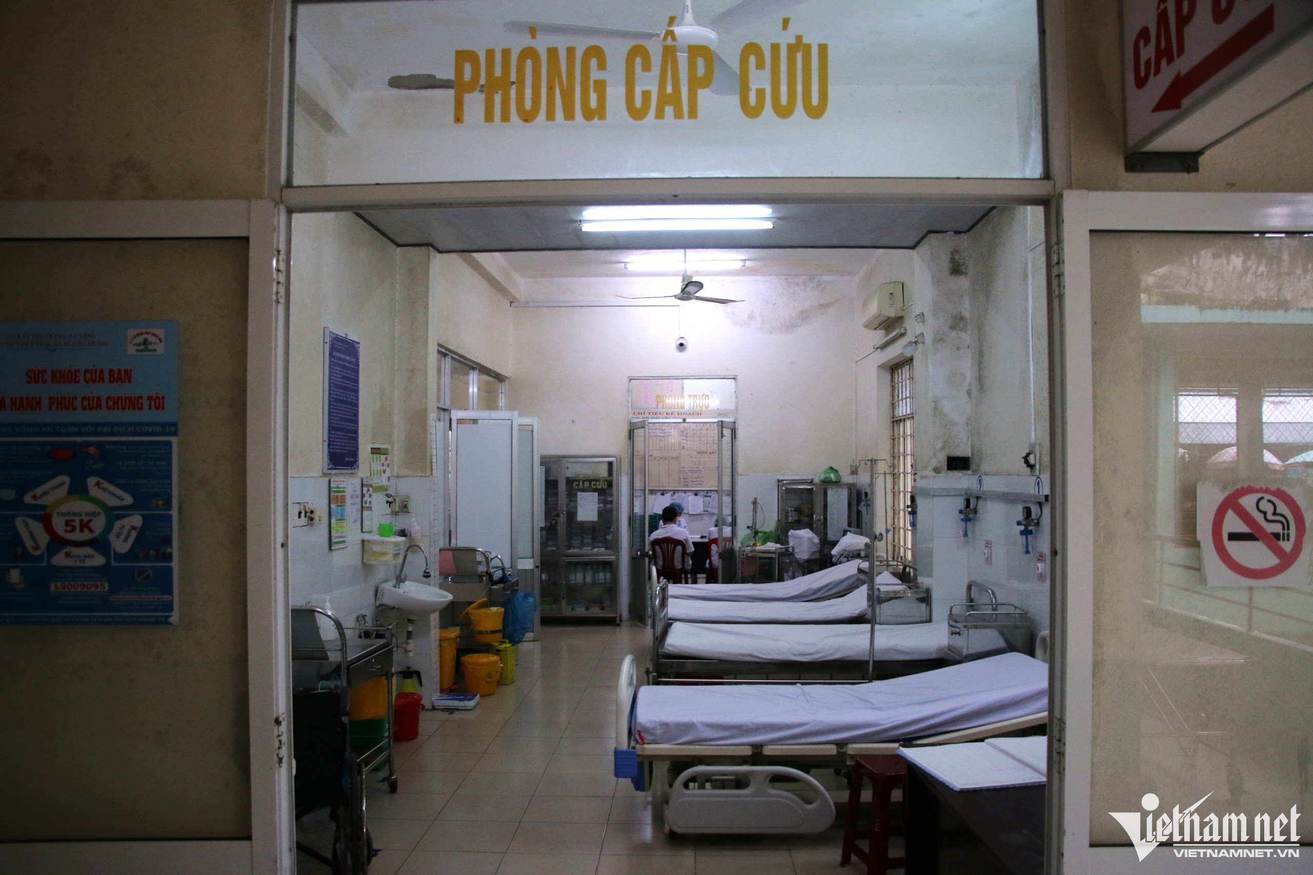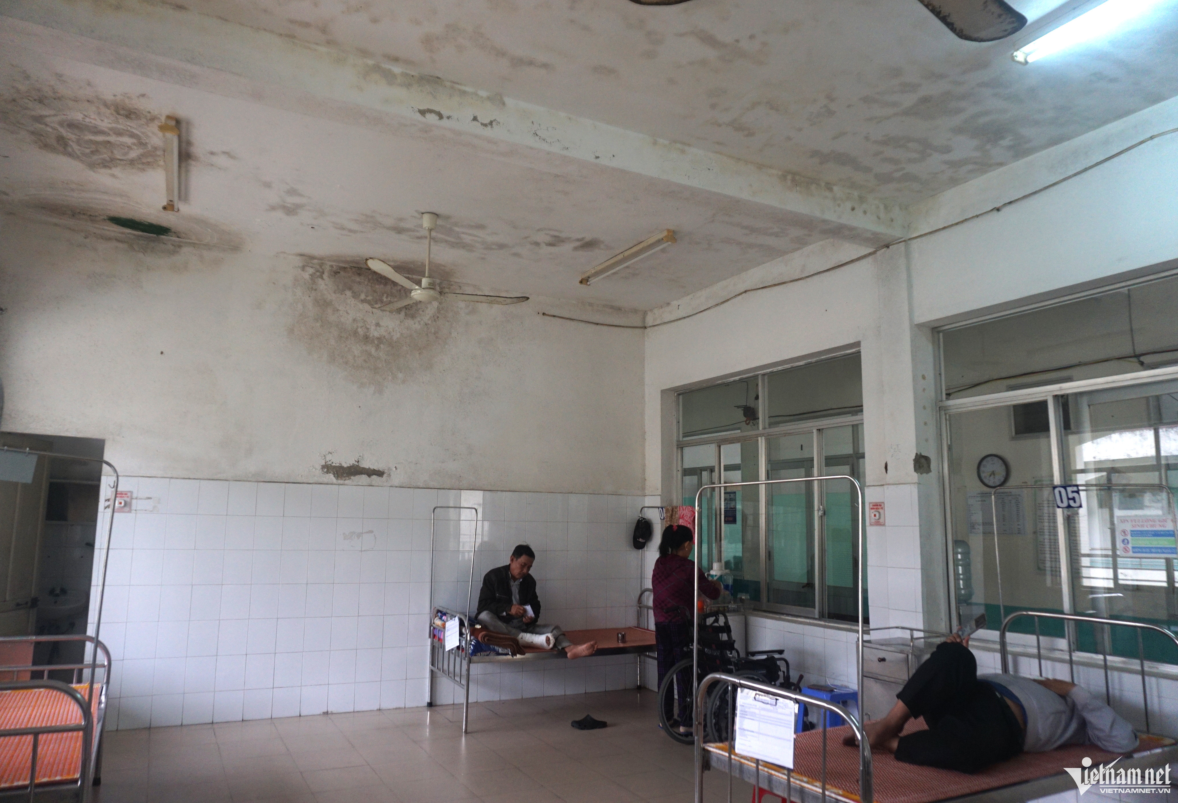 Theo ghi nhận của phóng viên, tại các khoa khám bệnh, trần nhà bị thấm nước, tường bong tróc nặng, hệ thống điện hư hỏng.Nhân viên Trung tâm Y tế quận Ngũ Hành Sơn cho biết tình trạng xuống cấp xảy ra nhiều năm qua, vữa trên trần nhà rơi xuống hàng ngày, vất vả nhất là vào mùa mưa nước thấm dột chảy ròng ròng. Trong ảnh là khu vực phòng sinh hóa Khoa xét nghiệm. Nhân viên cho biết về mùa mưa nước thấm dột, mọi người phải mang ủng để làm việc và thay nhau hứng nước để tránh làm hư hỏng thiết bị.Khu vực hành lang nối các khoa, nước thấm khiến mốc rêu xanh cả mảng trần, phải dùng xô để hứng nước.Phòng nghỉ ngơi của khoa Ngoại cũng bị thấm dột.Nước thấm vào các hệ thống điện tiềm ẩn nguy cơ mất an toàn.Người bệnh nằm điều trị trong điều kiện không đảm bảo khi phòng bệnh, tường, trần rêu, luôn có mùi ẩm mốc.Bà Phan Thị Cúc (62 tuổi, ngụ quận Ngũ Hành Sơn) cho biết bản thân rất lo lắng khi điều trị bệnh trong điều kiện trung tâm y tế xuống cấp, không đảm bảo.Trước tình trạng xuống cấp nghiêm trọng, Trung tâm Y tế quận Ngũ Hành Sơn đã có tờ trình gửi Sở Y tế Đà Nẵng để xin kinh phí sửa chữa, đảm bảo điều kiện khám bệnh của người dân.