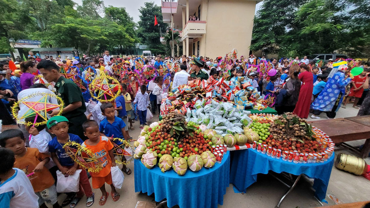 Chương trình “Trung thu cho các cháu” trẻ em miền núi xã A Bung diễn ra ngày 5/9. Tham dự chương trình có Thượng tá Trần Tuấn Anh – Phó Chỉ huy trưởng Bộ chỉ huy BĐBP tỉnh; ông Nguyễn Sỹ Huấn – Trưởng Phòng giáo dục huyện Đakrông; lãnh đạo, ban ngành đoàn thể xã A Bung; Ban Giám hiệu, thầy cô giáo Trường THCS & TH xã A Bung; nhóm thiện nguyện “Kết nối yêu thương” và đông đảo phụ huynh cùng hơn 450 cháu học sinh tiểu học trên địa bàn xã.