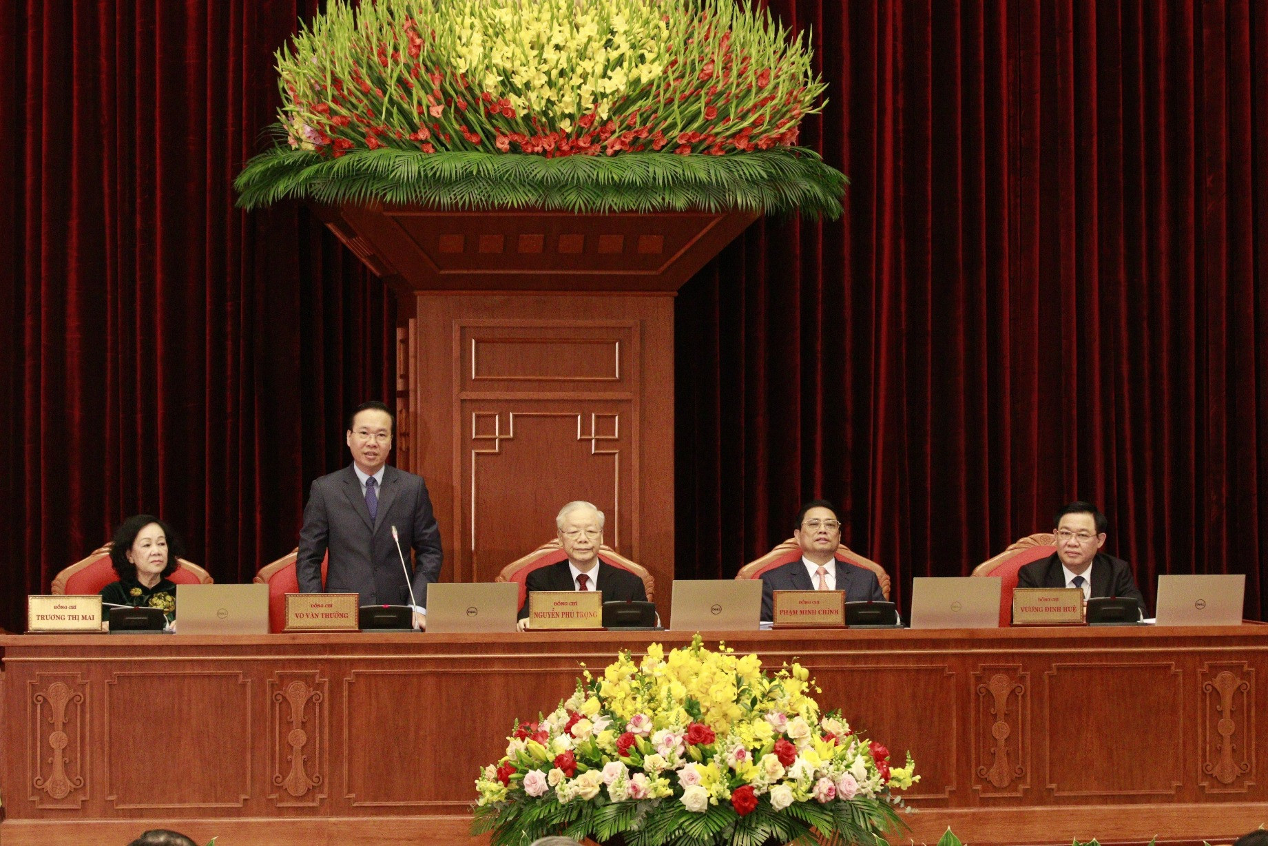 Chủ tịch nước Võ Văn Thưởng thay mặt Bộ Chính trị điều hành hội nghị, phiên họp buổi sáng.