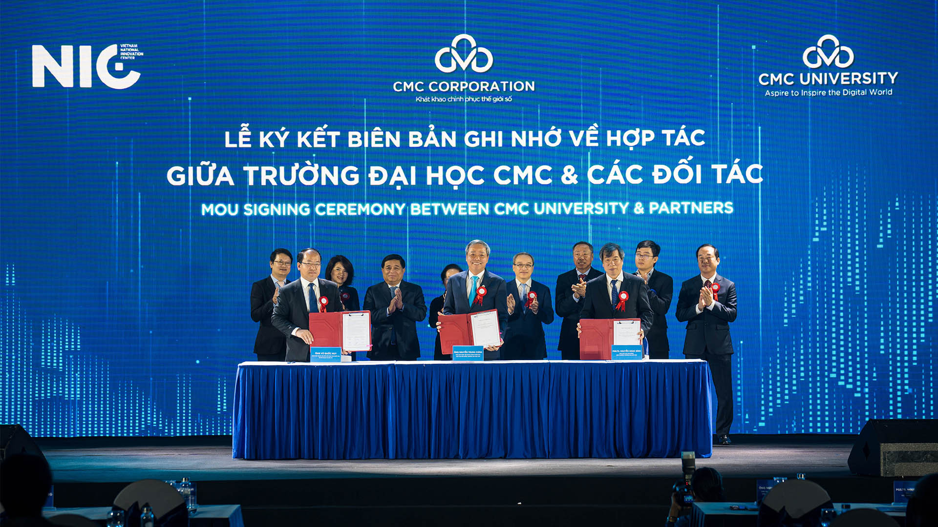 Không chỉ ký kết biên bản ghi nhớ hợp tác (MOU) với những công ty thành viên thuộc Tập đoàn CMC, các đối tác quốc tế hàng đầu như Samsung, Microsoft…, Trường Đại học CMC còn tạo cơ hội cho sinh viên được hòa mình vào dòng chảy thị trường lao động một cách chủ động và tự tin ngay khi còn ngồi trên ghế giảng đường, bằng việc gắn kết chặt chẽ công tác đào tạo với môi trường làm việc thực tiễn tại Top 500 doanh nghiệp hàng đầu Việt Nam (VNR500) qua chương trình “Nhà cộng sự tương lai Top 500”.
