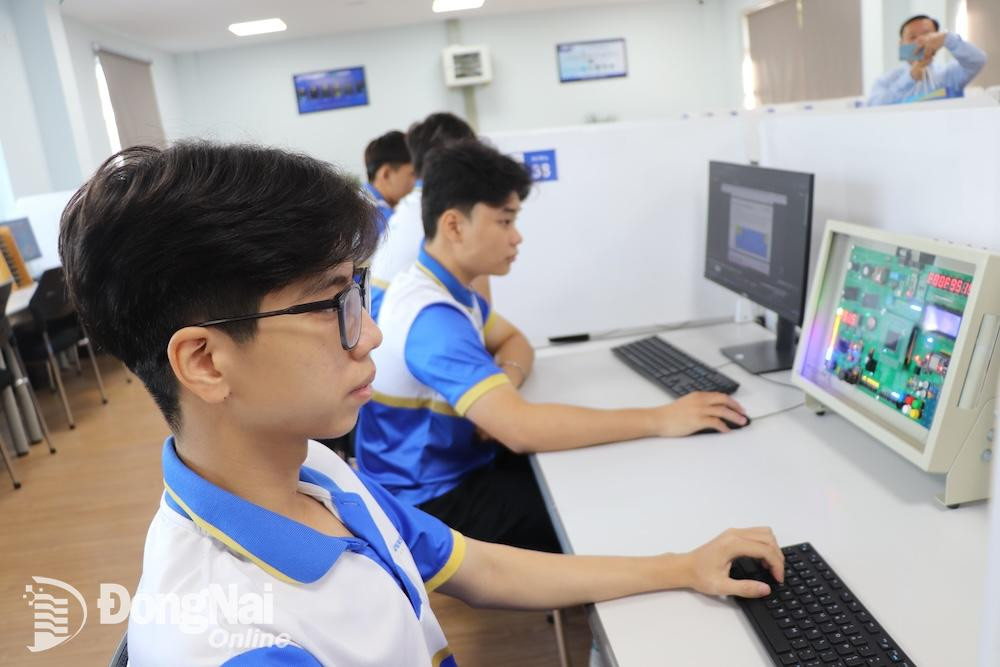 | Sinh viên Trường đại học Lạc Hồng học tại phòng thực hành vi mạch bán dẫn. Ảnh: Hải Yến |