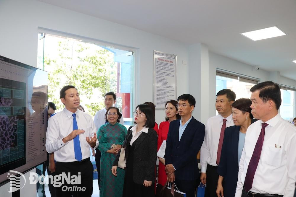 | Lãnh đạo tỉnh tham quan Phòng thực hành vi mạch bán dẫn Trường đại học Lạc Hồng. Ảnh: Hải Yến |