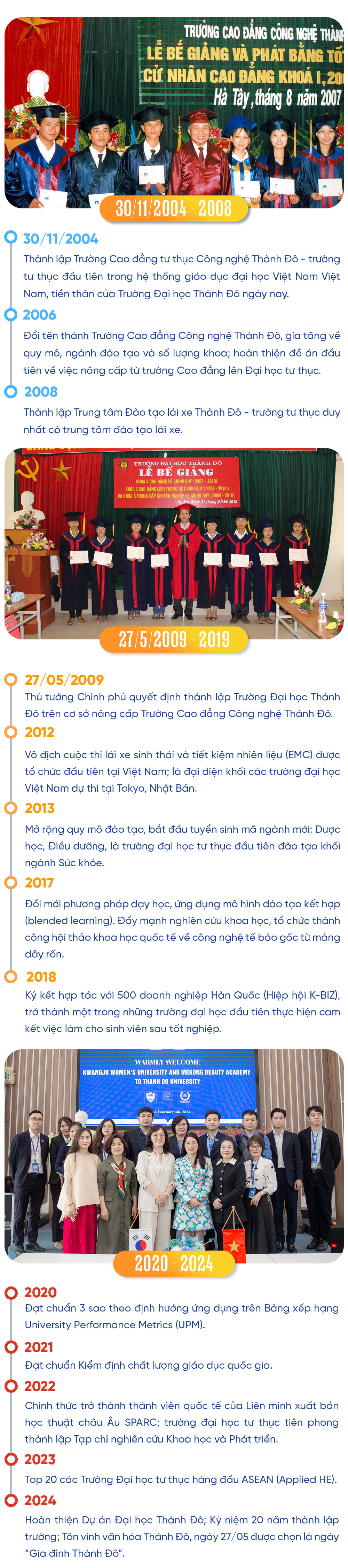 Cách đây tròn 20 năm, vào ngày 30/11/2004, trường Cao đẳng tư thục Công nghệ Thành Đô - tiền thân của Trường Đại học Thành Đô ra đời. Năm 2009, đúng dịp kỷ niệm 5 năm thành lập, Thủ tướng Chính phủ đã có quyết định nâng cấp trường lên bậc đại học với tên gọi Trường Đại học Thành Đô.