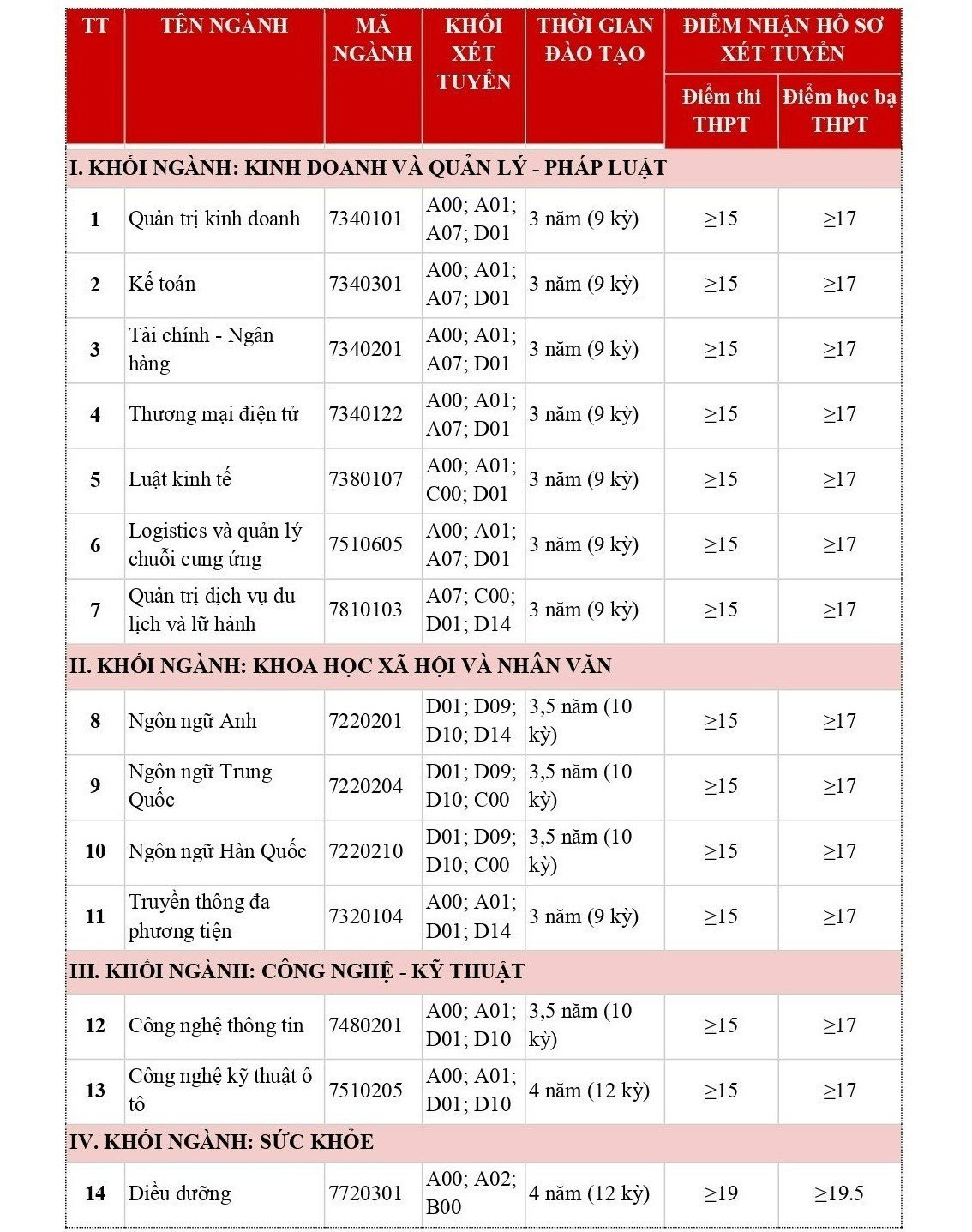 Trường Đại học Trưng Vương chính thức thông báo đợt xét tuyển bổ sung theo phương thức xét điểm thi tốt nghiệp THPT năm 2023 và xét học bạ THPT. Điểm nhận hồ sơ xét tuyển bổ sung của các ngành cụ thể như sau: