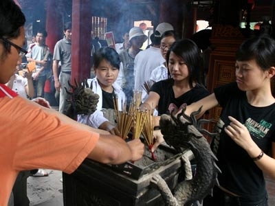 Trước kỳ thi tuyển sinh, HS vào Văn Miếu cầu may. Ảnh: Lê Anh Dũng |