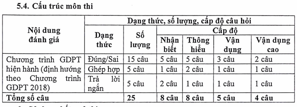 Mỗi đề thi có 3 dạng gồm: Câu trắc nghiệm đúng sai; Câu trắc nghiệm đối chiếu; Câu trắc nghiệm trả lời ngắn.