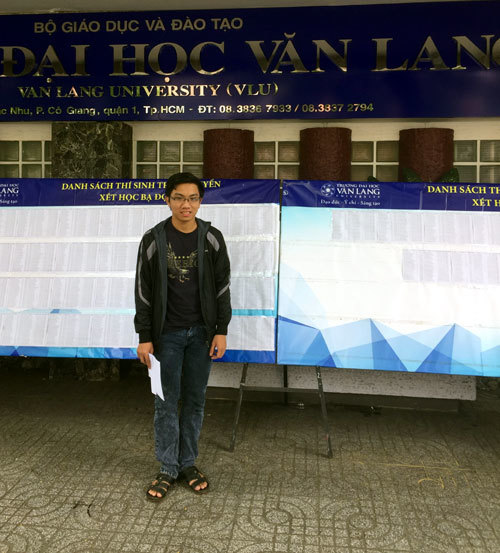 SV Huỳnh Phước Thiện trước cổng trường đại học. |
