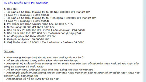 Không chỉ vậy, trong thông báo nhập học gửi đến thí sinh, trường này cũng công bố mức học phí dành cho thí sinh ngoại tỉnh là 320.000VNĐ, cao hơn 60.000VNĐ so với học phí của sinh viên tại Hà Nội.