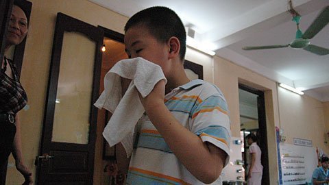 Ngoài việc đảm bảo điều kiện ánh sáng, thoáng mát cho các lớp, Trường mầm non Kim Liên (quận Đống Đa) cũng quan tâm phòng dịch bệnh mùa hè cho trẻ: bát được sấy khô, khăn được luộc cẩn thận.