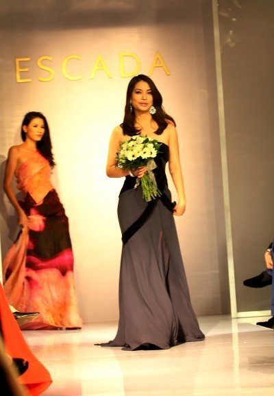 Nhiều ánh mắt ngưỡng mộ đuổi theo những bước chân cô người mẫu đình đám một thời, nay đã là bà mẹ một con nhưng vẫn giữ nguyên vóc ngọc và dường như ngày càng đằm thắm, quyến rũ hơn với vẻ đẹp sang trọng, tự tin.