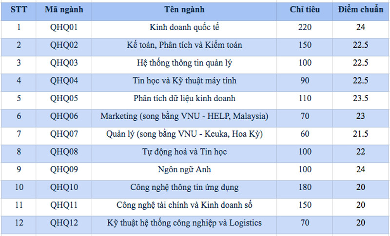 Theo đó, mức điểm chuẩn năm nay dao động từ 20 đến 24 điểm (theo thang điểm 30), “dễ thở” hơn so với năm 2021. Các thí sinh trúng tuyển vào Trường Quốc tế cần đáp ứng điều kiện phụ là điểm tiếng Anh từ 6 điểm trở lên để đảm bảo chất lượng thí sinh ứng tuyển vào trường.