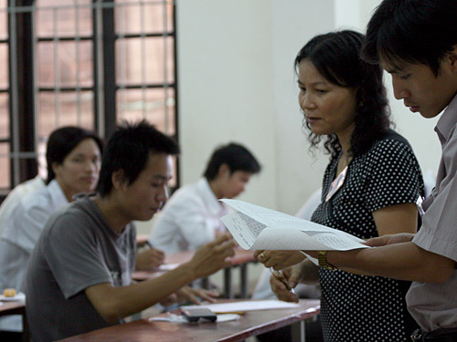 | Hôm qua 22-8, rất đông thí sinh đến nhận giấy chứng nhận kết quả thi tuyển sinh ĐH-CĐ năm 2011. |