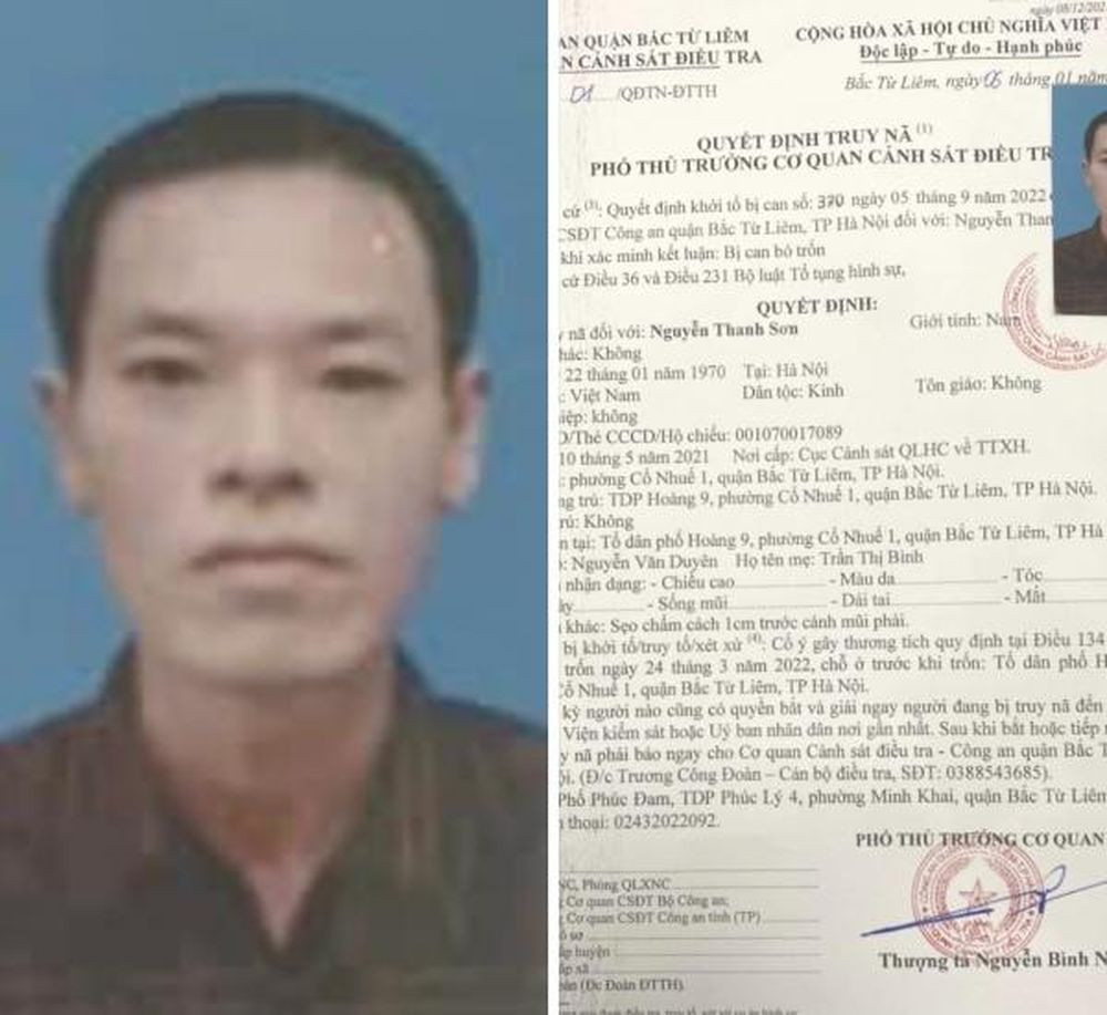 Ngày 25/5, Cơ quan CSĐT Công an quận Bắc Từ Liêm, Hà Nội đã ra quyết định truy nã bị can đối với Nguyễn Thanh Sơn (SN 1970, trú tại phường Cổ Nhuế 1, quận Bắc Từ Liêm) về tội Cố ý gây thương tích.