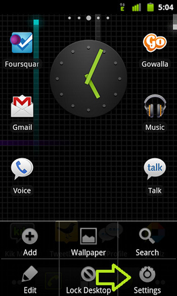 Bước 1: Mở phần cài đặt chính của điện thoại ra, bằng cách nhấn vào phím Menu và sau đó chọn Settings.