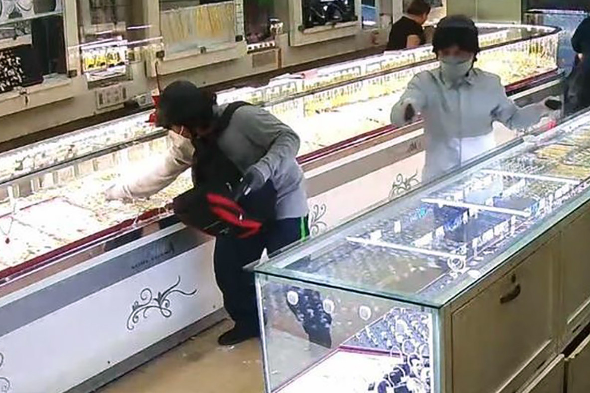 Trong đó, một tên cướp có dáng người mập, mặc áo thun dài tay màu xám, quần thun dài màu đen có sọc màu xanh, đội mũ bảo hiểm màu đen. Tên này đeo khẩu trang mang balo màu đỏ-đen. Hắn cầm súng ngắn, trực tiếp đập tủ kính lấy vàng, rồi điều khiển xe máy tẩu thoát sau khi gây án.
