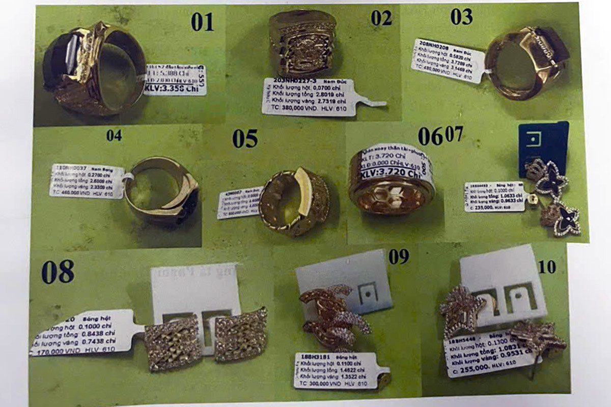 Ngày 27/9, Công an tỉnh Khánh Hòa quyết định truy tìm 12 mẫu trang sức bằng vàng cùng xe máy màu đỏ đen liên quan vụ cướp tiệm vàng Kim Khoa trên đại lộ Hùng Vương, TP Cam Ranh.