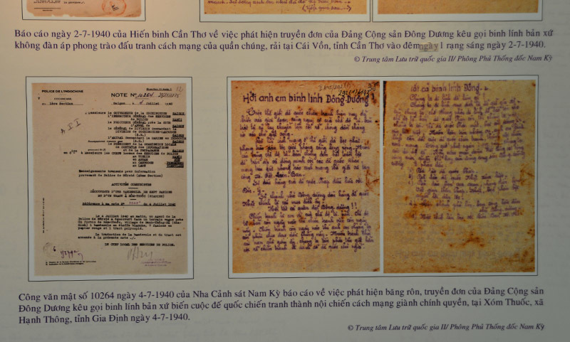 Để phục vụ cho cuộc triển lãm kỷ niệm 70 năm CMT8 và Quốc khánh 2/9 tại TP.HCM lần này, cả hai trung tâm đã lựa chọn tài liệu từ những phông lưu trữ lớn như Thống Đốc Nam Kỳ, Thống Sứ Bắc Kỳ, Tòa Đốc lý Hà Nội, Tòa Sứ Nam Định, cùng một số tài liệu sưu tầm được từ lưu trữ hải ngoại - Cộng hòa Pháp.