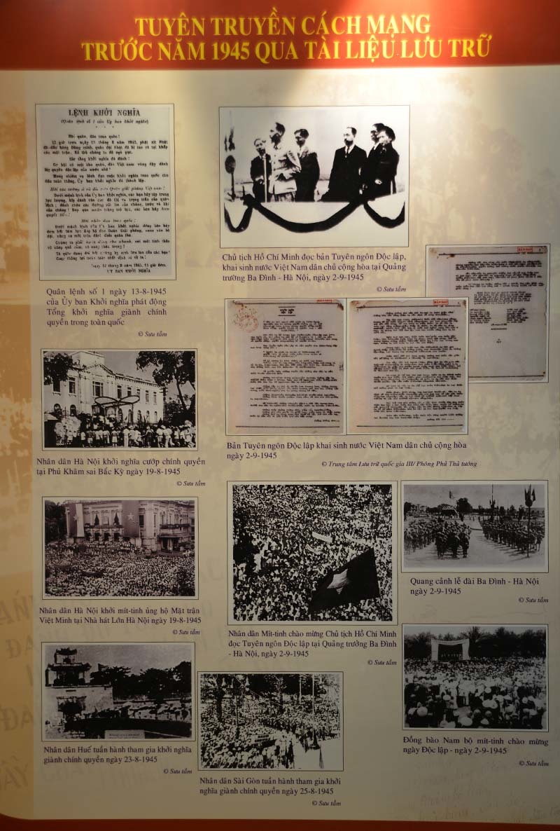 160 phiên bản tài liệu được trưng bày tại triển lãm, chủ yếu là truyền đơn, ấn phẩm của Đảng Cộng sản VN và các tổ chức quần chúng dưới sự lãnh đạo của Đảng trước CMT8 năm 1945.