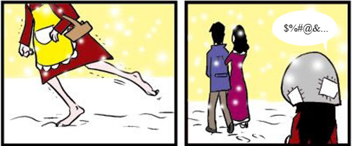 Thành cô bé bán diêm nghèo khổ xách giỏ diêm đi bán. Không may cho cô bây giờ người ta toàn dùng bật lửa nên diêm của cô mãi cũng chả có ai thèm ngó tới. Lúc ấy cô nghĩ ngay ra chiêu trò "khuyến mại đặc biệt"...