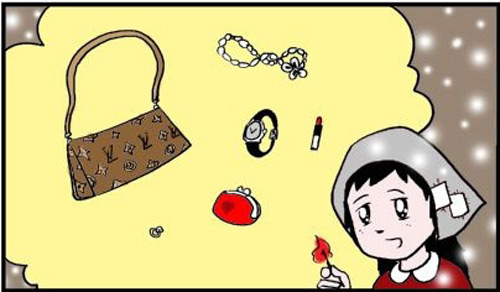 Cô quẹt que diêm thứ hai và ước: "Cầu cho năm nay sẽ có nhiều anh đẹp trai tới và dẫn mình đi shopping đủ thứ, nào là hột xoàn, mỹ phẩm, đồng hồ, quần áo hàng hiệu".