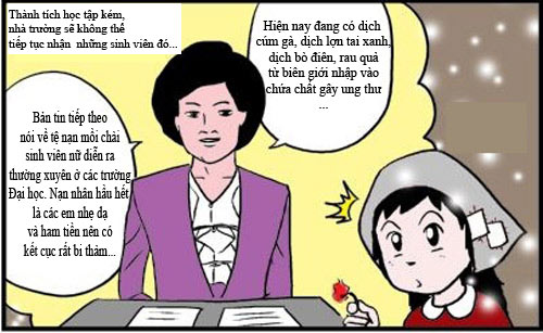 Liên tiếp 3 bản tin khiến cô bừng tỉnh giấc mà bỏ ước mơ hão huyền của mình lẳng lặng đi về kí túc xá với bát mì tôm đang chờ mình sẵn.