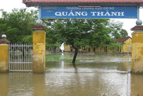 Nhiều trường học trên địa bàn bị nước lũ cô lập, khiến hàng ngàn học sinh phải nghỉ học chạy mưa bão. Tại chợ Tây Ba, xã Quảng Thành (huyện Quảng Điền) cũng bị nước gây ngập và cô lập.