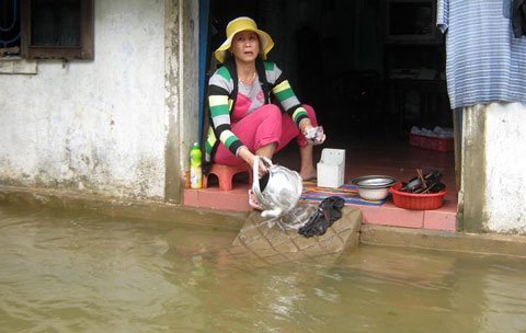 ![]() Nước lũ dân cao “giúp người dân” sinh hoạt ngay trước cổng nhà. ![]() |